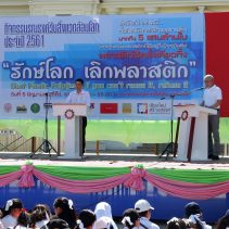 Chiang Mai Mayor Tassanai Buranupakorn joined many local organisations and schools for the World Environment Day at Three Kings Monument. Over 200 cyclists rode around the old city promoting ‘Say No to Plastic; if you cannot reuse it, refuse it’.