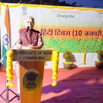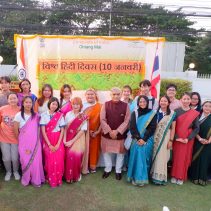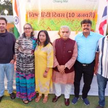 World Hindi Day was celebrated at a well attended event at the Consulate of India in Chiang Mai. Thai students from ‘Bharat Vidya’ of Chiang Mai University reciting poems, presenting an outstanding chorus song and a dance. Many Hindi poets from Chiang Mai including Pradeepti Singh, Subhashini, Ranjeet Singh, and Shyam Arora presented their newly written poems, and Ashok Rajpal presenting a couple of poems of others in lyrical form. Acclaimed Singer Parth Patel, for a change, sang two songs from the Golden Era of Hindi film songs, and on popular demand a Gujarati devotional songs as well. Ajarn Dr Patma and Dr Deepti from ‘Bharat Vidya’ in Humanities, CMU made a presentation on a soon to be launched Bachelor Degree Course on Indian Culture. The event concluded with Consul Krishna Chaitanya presenting Indian Prime Minister H.E. Mr Narendra Modi’s message on the occasion of World Hindi Day. He also recited his translation of a poem ‘Autumn Morning in Bihar’, penned by the Irish Ambassador to Thailand H.E. Mr Pat Bourne during his previous posting in New Delhi. Dr Deepti superbly compared the event while Chai N Thai did the catering and decoration.