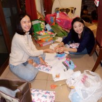 Wrapping donated Christmas presents. On Saturday 14 December 2019 over 1200 items will be handed out to over 400 kids at orphanages in Doi Saket.