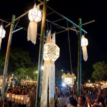 There was a Buddhist ceremony at Three Kings Monument for the blessing from Lord Buddha for Loy Krathong 2018 / Yee Peng Festival. The ceremony also included opening of the ‘candle tray lighting ceremony’ accompanied by traditional dancers. Details of what to expect in the coming days: Nov 21 @6pm Opening ceremony Yee Peng Festival 2018 at Thapae Gate // Nov 21-22 7pm until 11pm Miss & Mr Yee Peng Contest at Thapae Gate // Yee Peng Kids Contests at Chiang Mai Municipality Office //Nov 22 @ 7pm & 10pm release Krathong Sai Lanna at Municipality office on the river bank // Cultural performances by the Folk Dance by Lanna Drum Association, Cultural Performance Art, Contemporary Dance by Performing Arts School at Chiang Mai Municipality Office 7pm until 10pm //Nov 23 Grand Krathong Procession 7pm start at Thapae Gate – to Chiang Mai Municipality office // Fireworks Display in honour of HM The King at Ping River Chiang Mai Municipality Office 7.30pm and 9.30pm// Between Nov 20 – 23 many of the City’s Temples will have various ritual ceremonies.
