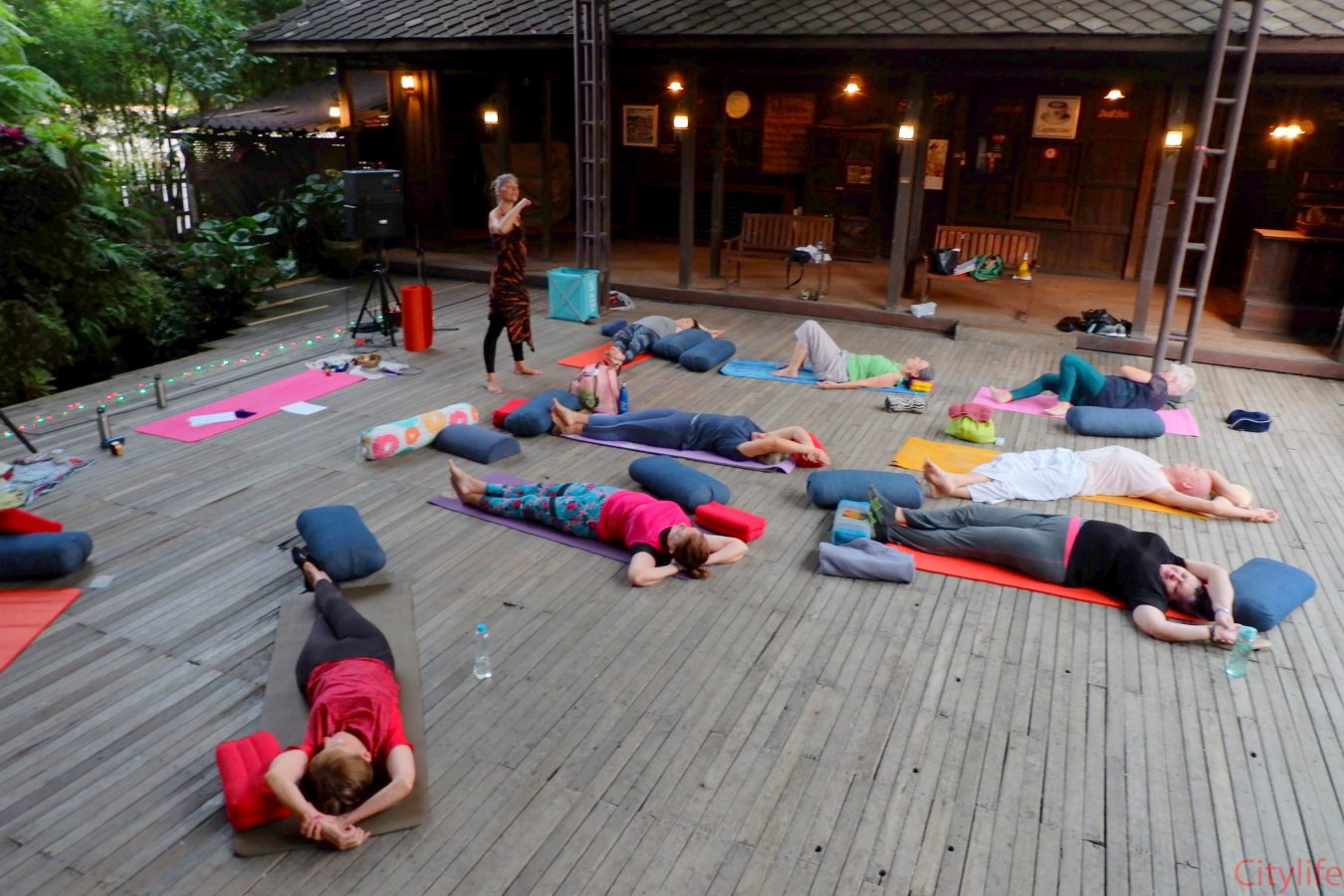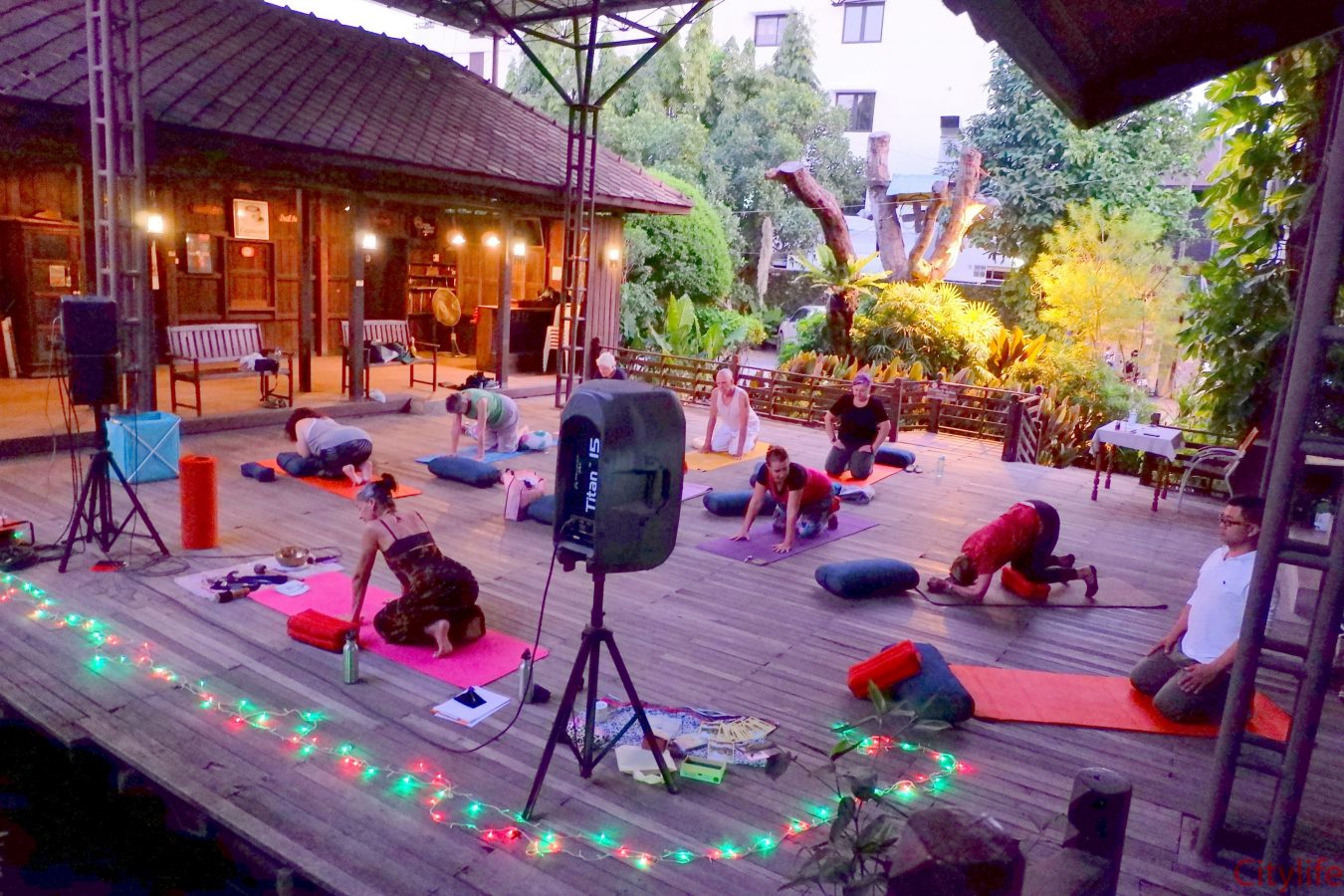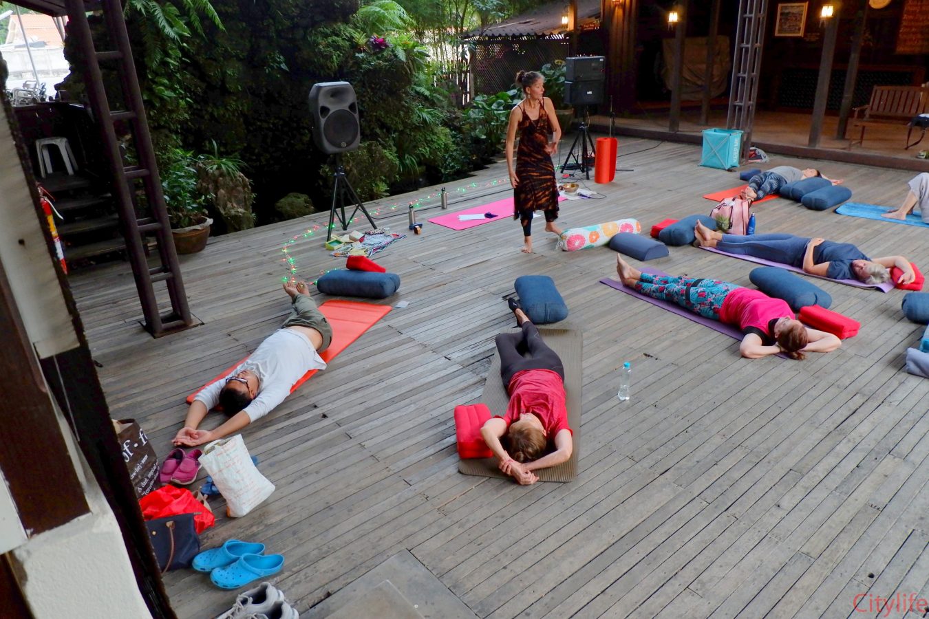 Yin Yoga at Martini’s Restaurant by the waterfall in collaboration with Monika from Move Smarter Pilates and Yoga Studio Mae Rim. Martini’s restaurant is located on Charoenrat Road, opposite Riverside Bar & Restaurant.