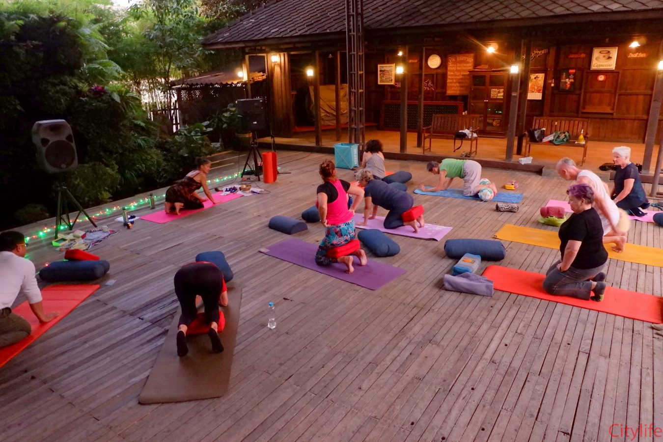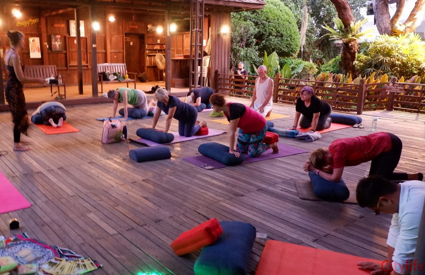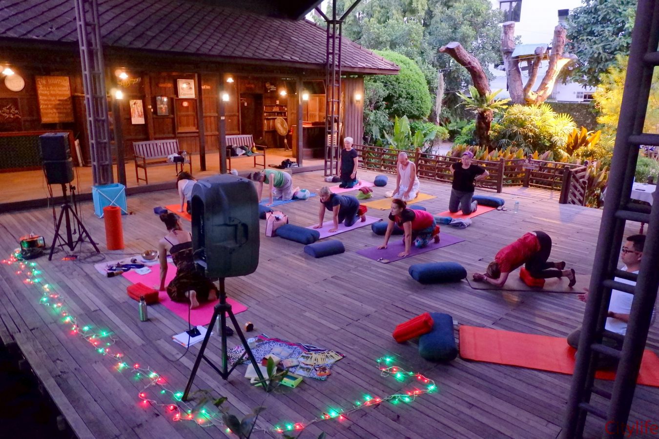 Yin Yoga at Martini’s Restaurant by the waterfall in collaboration with Monika from Move Smarter Pilates and Yoga Studio Mae Rim. Martini’s restaurant is located on Charoenrat Road, opposite Riverside Bar & Restaurant.