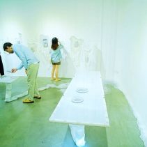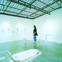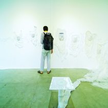 A solo exhibition by Michelle Day, an Australian sculptor and installation artist. Afterglow was developed from her previous artwork, “How to Grow Submarine”, to be the concept of the expression of remaining emotion of non presence self in space towards the sign of recent living from imagination into surreal world. The artwork is an installation composed of exotic materials including hair, debris, light, and scent. This exhibition aims to create the sense of approaching another unfamiliar things for audience. The opening ceremony has welcomed Mr.Ronald J (Ron) Elliott from the Honorary Consulate of Australia in Chiang Mai. There was a talk session given by the artists Michele Day and Dr. Sebastein Tayac. The exhibition is divided into 2 rooms, the installation “Disturbed Air” (2017) is showing in main room and the photography series “Trace” (2017) and “What remains” (2016) sculpture series is displaying in the second room.