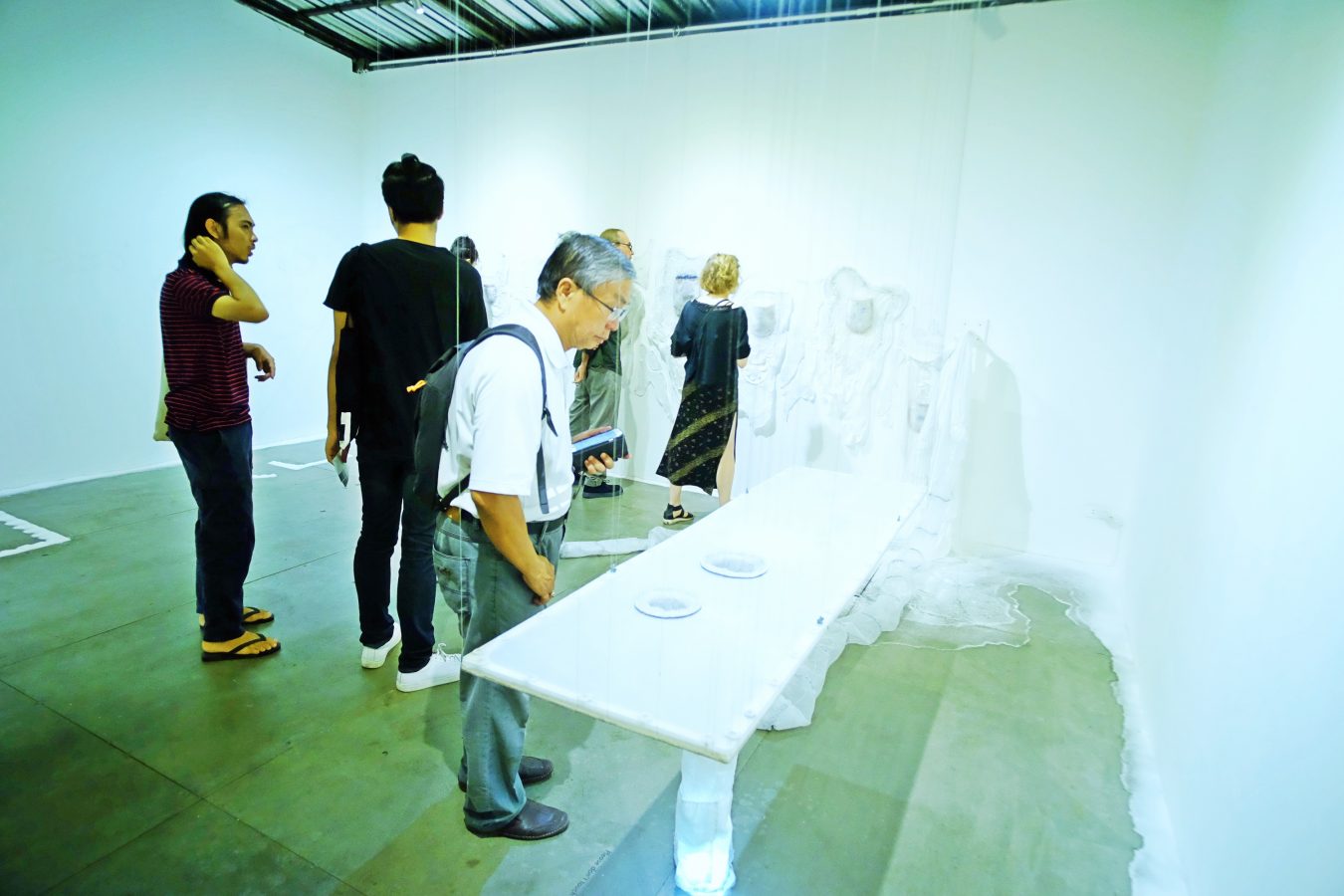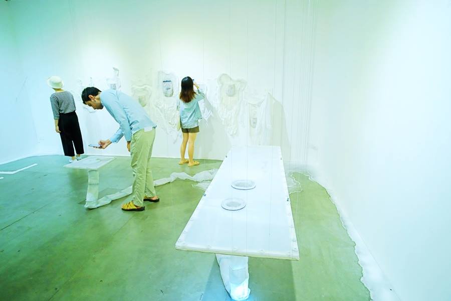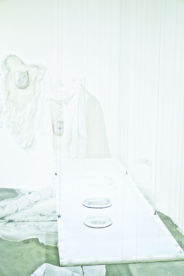 A solo exhibition by Michelle Day, an Australian sculptor and installation artist. Afterglow was developed from her previous artwork, “How to Grow Submarine”, to be the concept of the expression of remaining emotion of non presence self in space towards the sign of recent living from imagination into surreal world. The artwork is an installation composed of exotic materials including hair, debris, light, and scent. This exhibition aims to create the sense of approaching another unfamiliar things for audience. The opening ceremony has welcomed Mr.Ronald J (Ron) Elliott from the Honorary Consulate of Australia in Chiang Mai. There was a talk session given by the artists Michele Day and Dr. Sebastein Tayac. The exhibition is divided into 2 rooms, the installation “Disturbed Air” (2017) is showing in main room and the photography series “Trace” (2017) and “What remains” (2016) sculpture series is displaying in the second room.