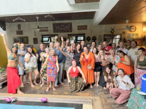 Pim celebrated her 50th birthday with a Tropical Copacabana pool party.