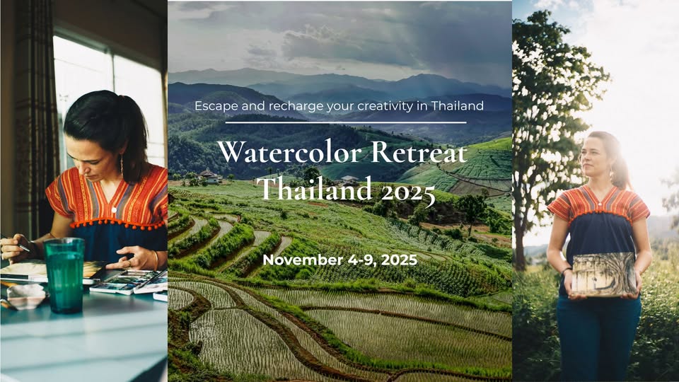 Join us for a 6-day Watercolor Retreat in Chiang Mai, designed especially for expats, travellers, and creatives longing to slow down and reconnect. Whether you’re a total beginner or have painted for years, this retreat is a safe, sacred space to explore watercolor at your own pace.