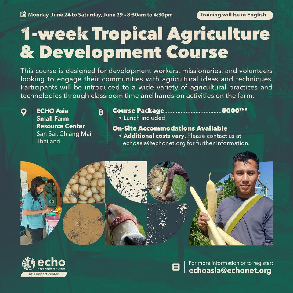 If yes, then you might consider joining our 1-week Tropical Agriculture & Development Course. In this workshop you will split your time between the classroom and the farm to get your hands dirty learning about soil fertility, plant propagation techniques, integrated pest management, appropriate technologies (e.g. biosand water filters), and basic livestock health. We will also integrate holistic ministry perspectives into our community development approaches, as we seek to love God, love the people that we serve, and steward the land around us.