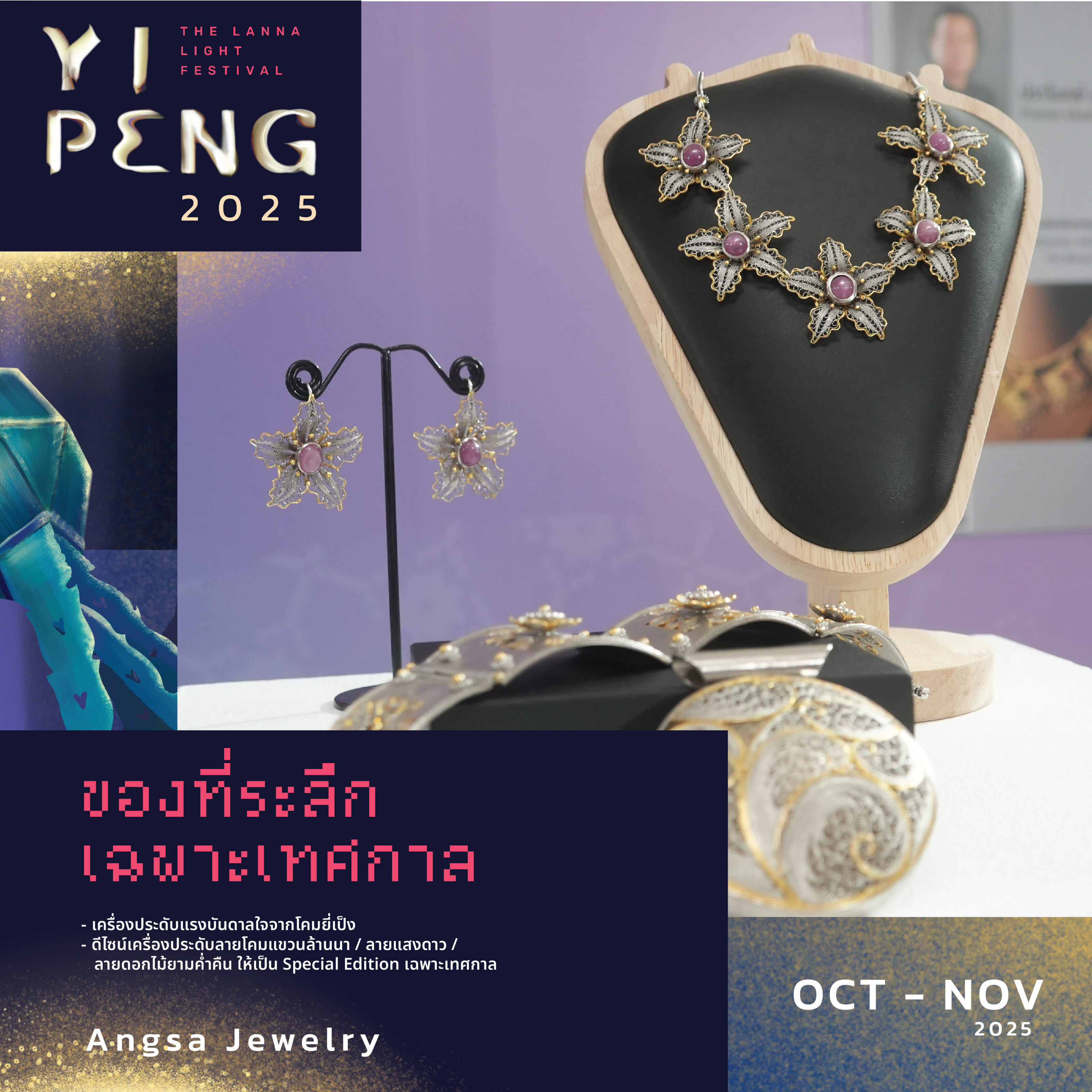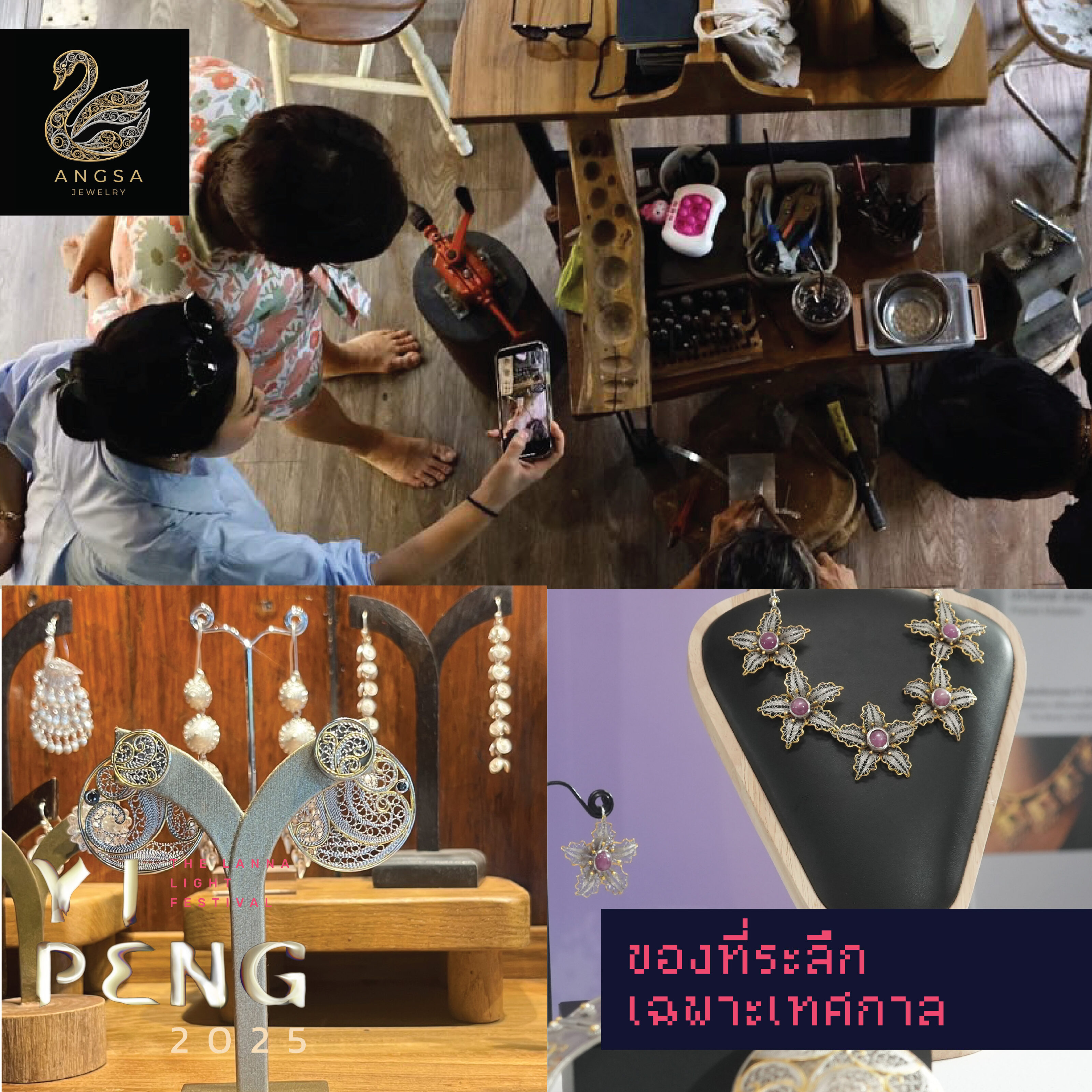 Handmade jewelry inspired by Lanna heritage, crafted into contemporary designs. Special Yi Peng Limited Edition collection features motifs of lanterns, starlight, and night blossoms. Perfect as keepsakes or meaningful gifts.