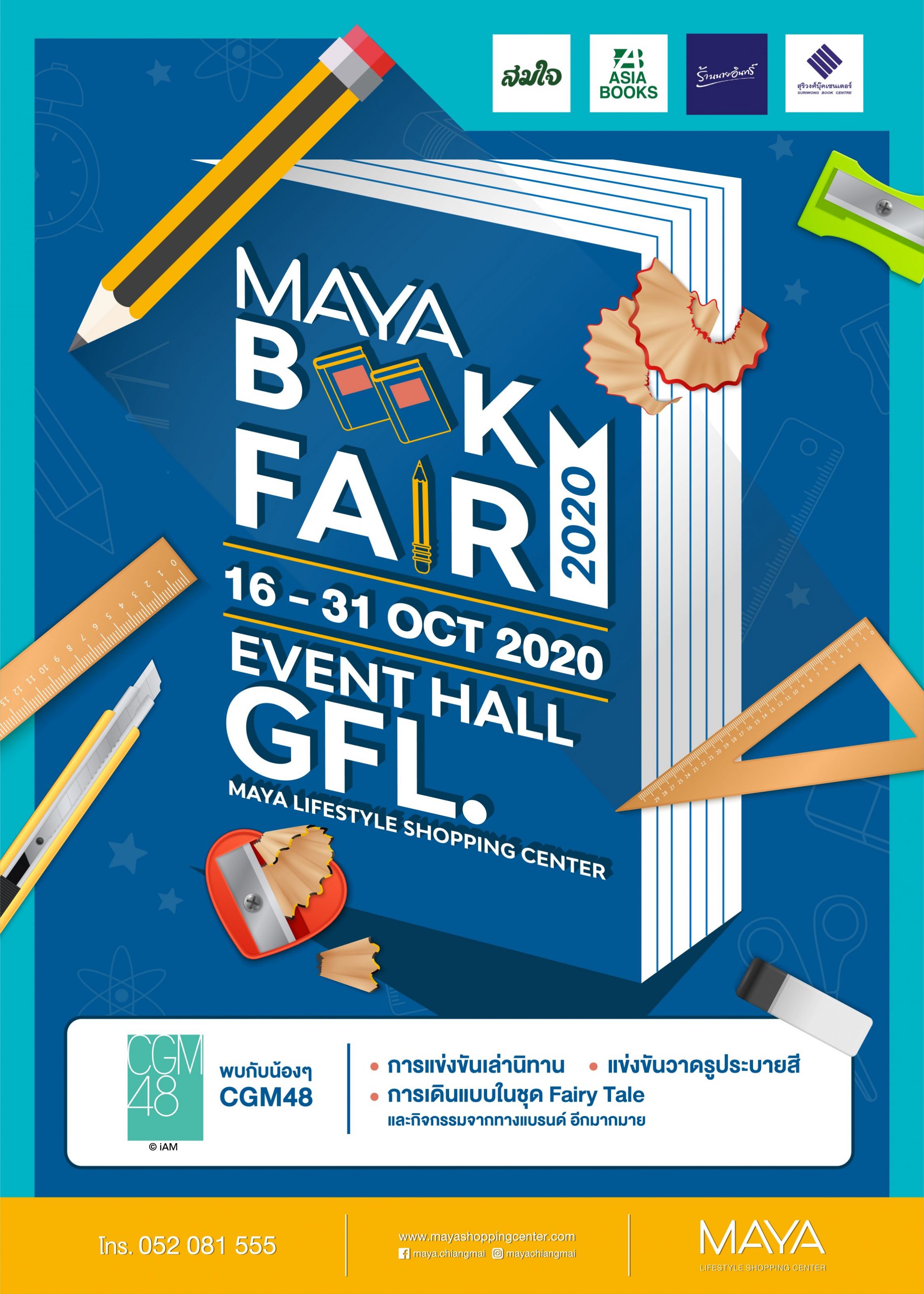 ศูนย์การค้าเมญ่า ไลฟ์สไตล์ ช้อปปิ้ง เซ็นเตอร์ ขอเชิญเที่ยวงาน “MAYA BOOK FAIR 2020” มหกรรมหนังสือครั้งยิ่งใหญ่ โดยจะจัดขึ้นระหว่างวันที่ 16 – 31 ตุลาคม 2563 ภายใต้ความร่วมมือระหว่าง 4 แบรนด์ดัง อาทิ เอเชียบุ๊ค, สมใจ, นายอินทร์ และ สุริวงศ์บุ๊คเซนเตอร์ พบกับหนังสือน่าอ่านจากสำนักพิมพ์ชื่อดังระดับประเทศ พร้อมโปรโมชันอัดแน่นตลอดครึ่งเดือน พิเศษสุดกับ กิจกรรมการแข่งขันเล่านิทาน, การแข่งขันวาดรูประบายสี, การเดินแบบชุดแฟรี่เทลล์ ชิงเงินรางวัลและของรางวัลมากมายตลอดทั้งงาน พบกันตั้งแต่วันที่ 16 – 31 ตุลาคม 2563 ณ ลานกิจกรรมอีเวนท์ฮอลล์ ชั้น G ศูนย์การค้าเมญ่า ไลฟ์สไตล์ ช้อปปิ้ง เซ็นเตอร์