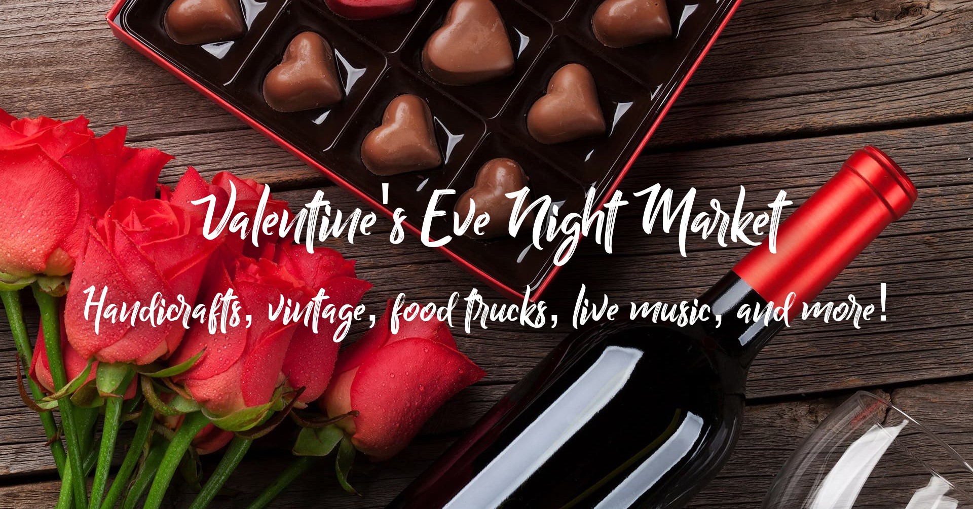 Come to our Valentine’s Eve night market! The evening before Valentine’s day is the perfect time to shop for handicrafts, vintage items, and more! We’ll have food trucks, live music, and lots to do.
