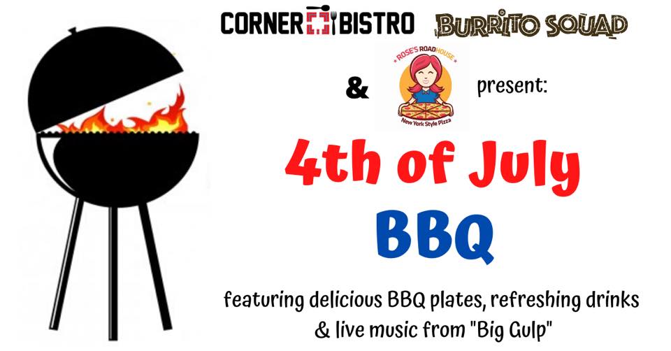 Come join us for amazingly delicious BBQ plates from Chef Pat & crew with refreshing drinks & live music by “Big Gulp”