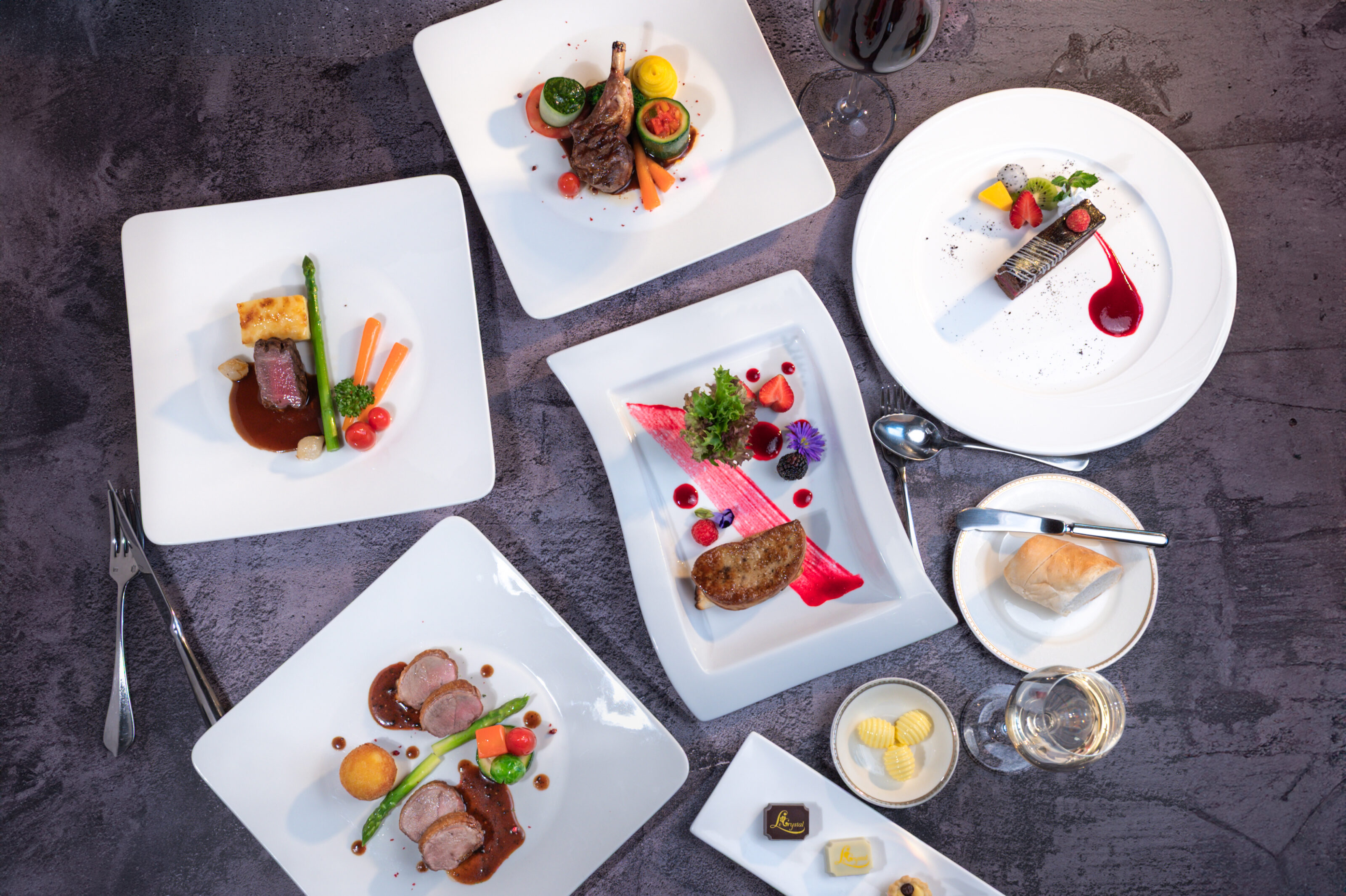 Indulge in a thoughtfully curated five-course French set menu, perfectly paired with five distinguished French wines, crafted to create a memorable gastronomic journey in a refined setting.