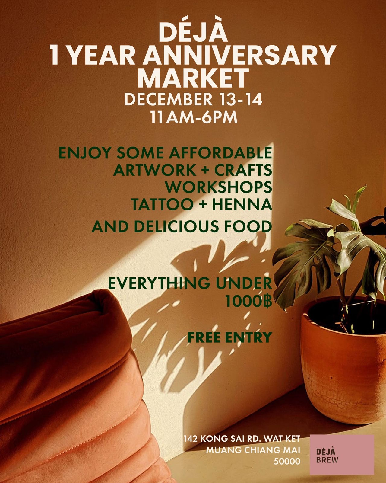 Join them on December 13–14, from 11 AM to 6 PM, for a special anniversary market featuring affordable artwork, crafts, workshops, tattoo and henna services, and a selection of delicious food. All items and activities are priced under 1,000 THB.