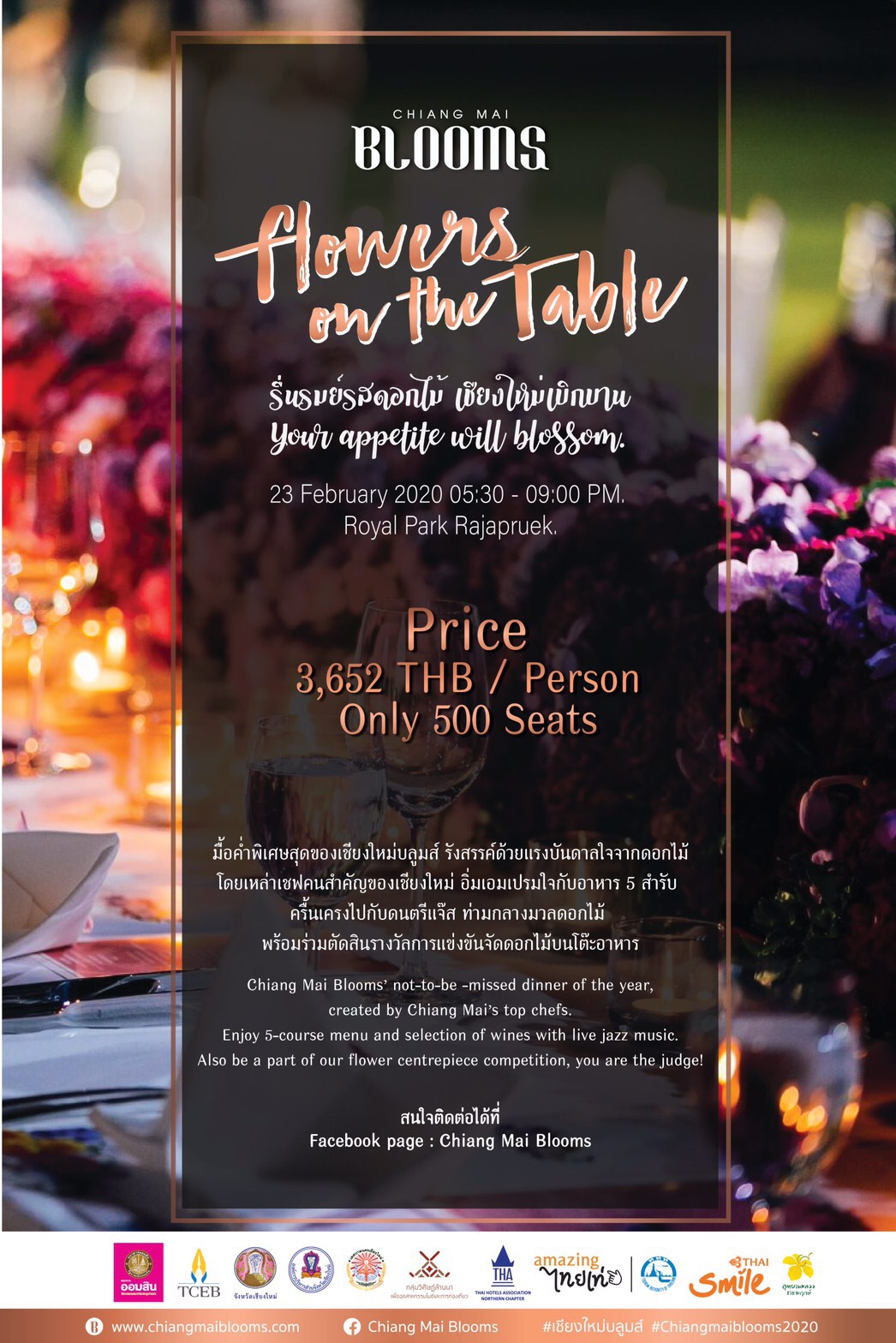 The dinner set is 3,652 baht per person.