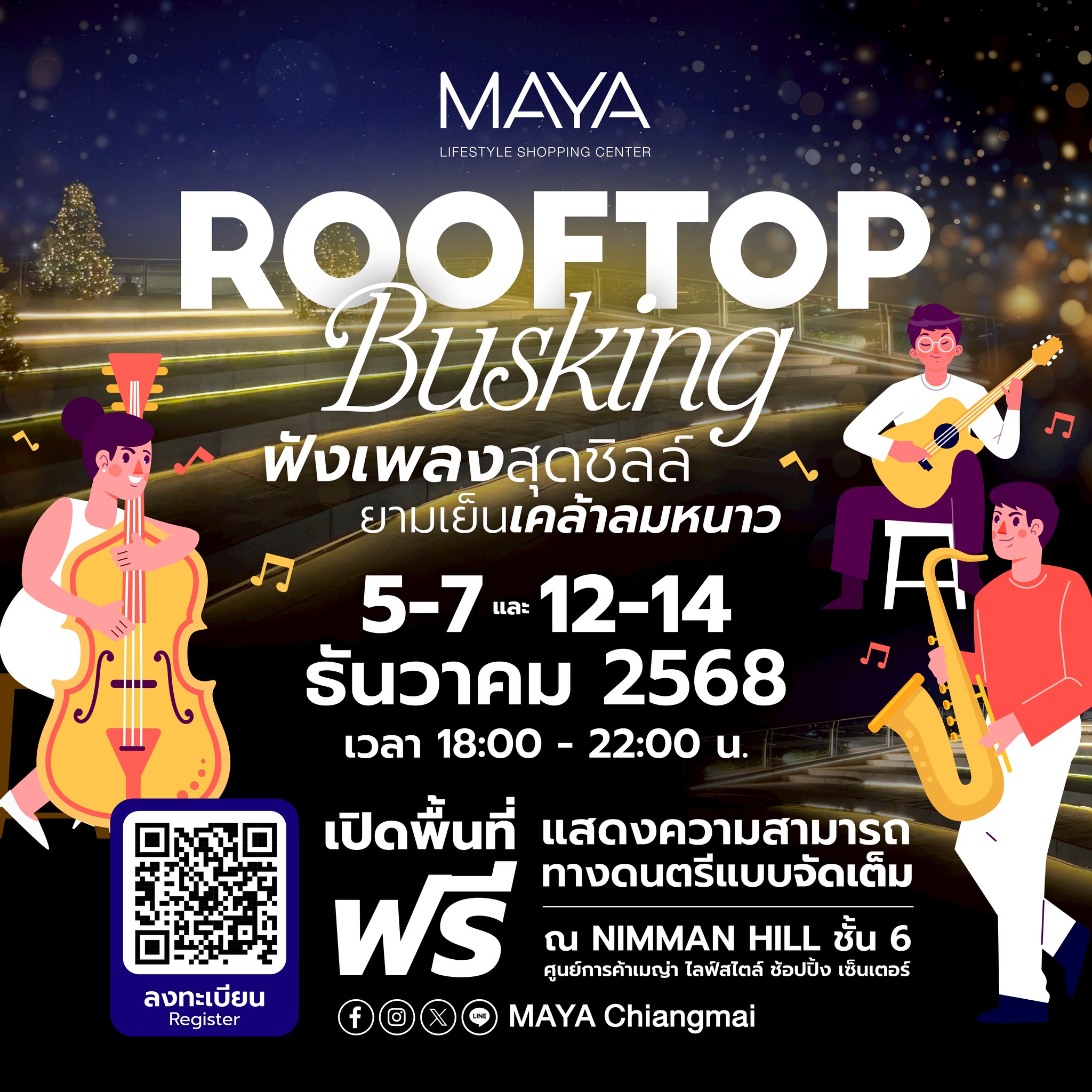 The event will take place on 5–7 December 2025 and 12–14 December 2025, from 18:00–22:00 hrs, at Nimman Hill, 6th Floor, MAYA Lifestyle Shopping Center.