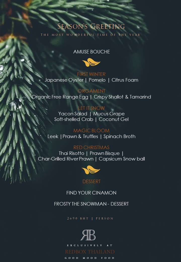 Redbox Thailand , Chiang Mai Thai and Southeast Asia twisted restaurant with exclusive 10 tables, all offering season’s greeting menu with award-winning Michelin’s dish.