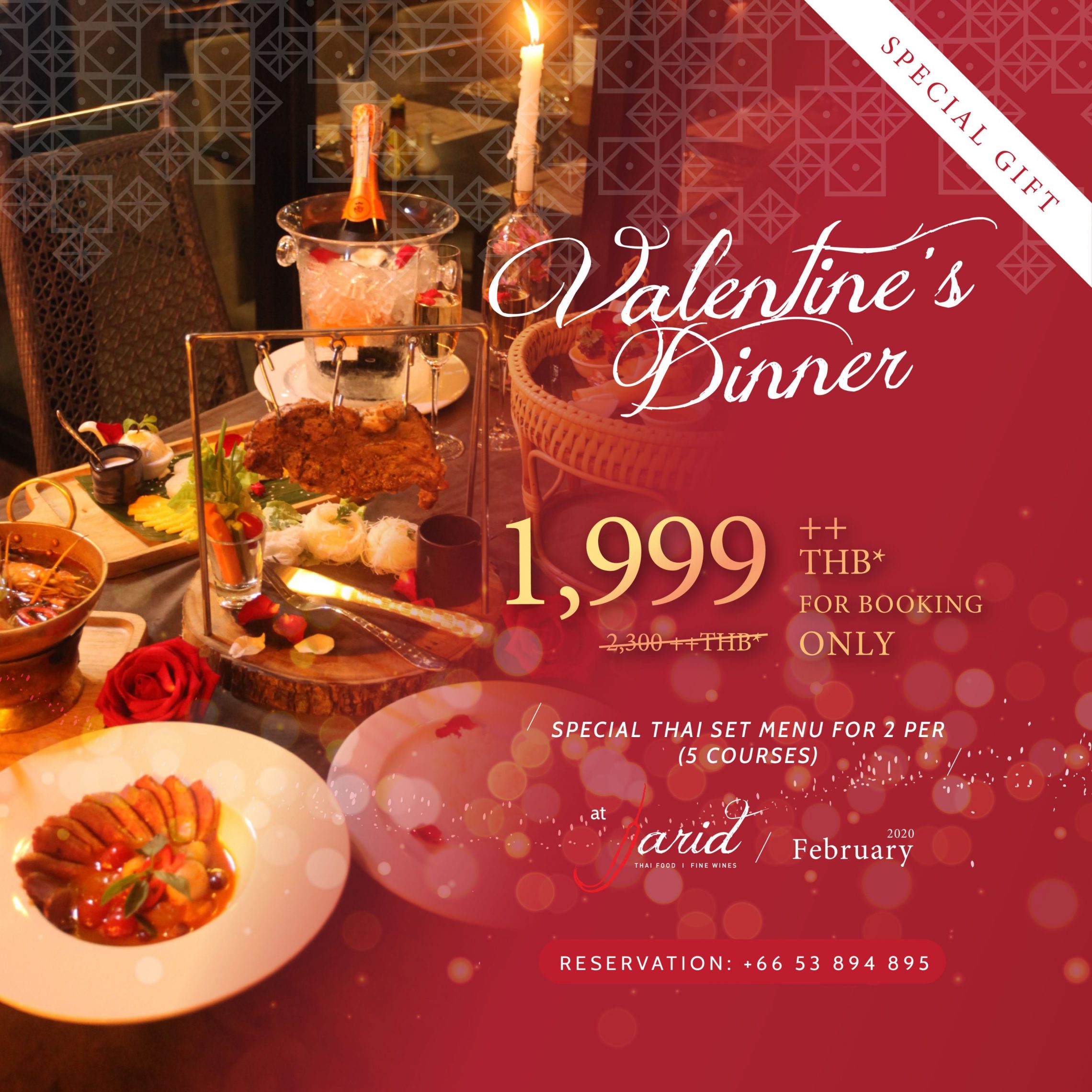 Valentine Thai Set Dinner for 2 at 1999 ++ THB FOR BOOKING ONLY, regular price 2300 ++ THB.