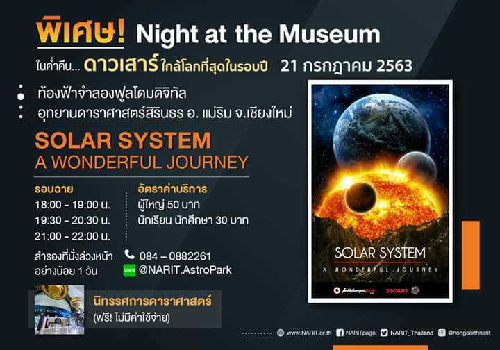 Open to see special astronomy and planetarium exhibitions at Sirindhorn Astronomy Park, Mae Rim District, Chiang Mai from 18.00 – 22.00 hrs.