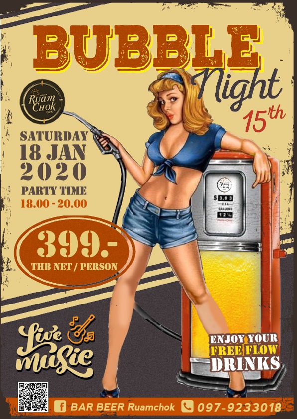 399THB Free flow drinks (beer) from 6pm until 8pm