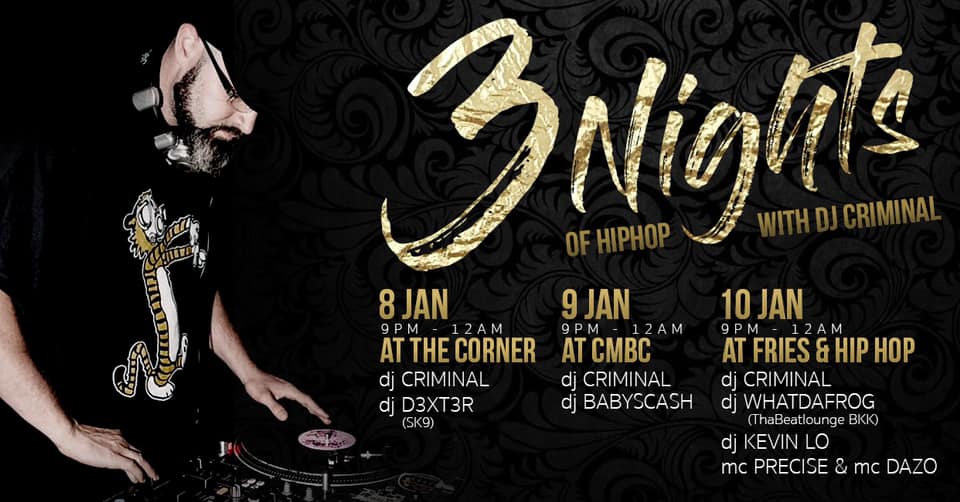 Come check out DJ Criminal on his CNX tour playing alongside some of Thailand’s BEST Hip Hop DJs!