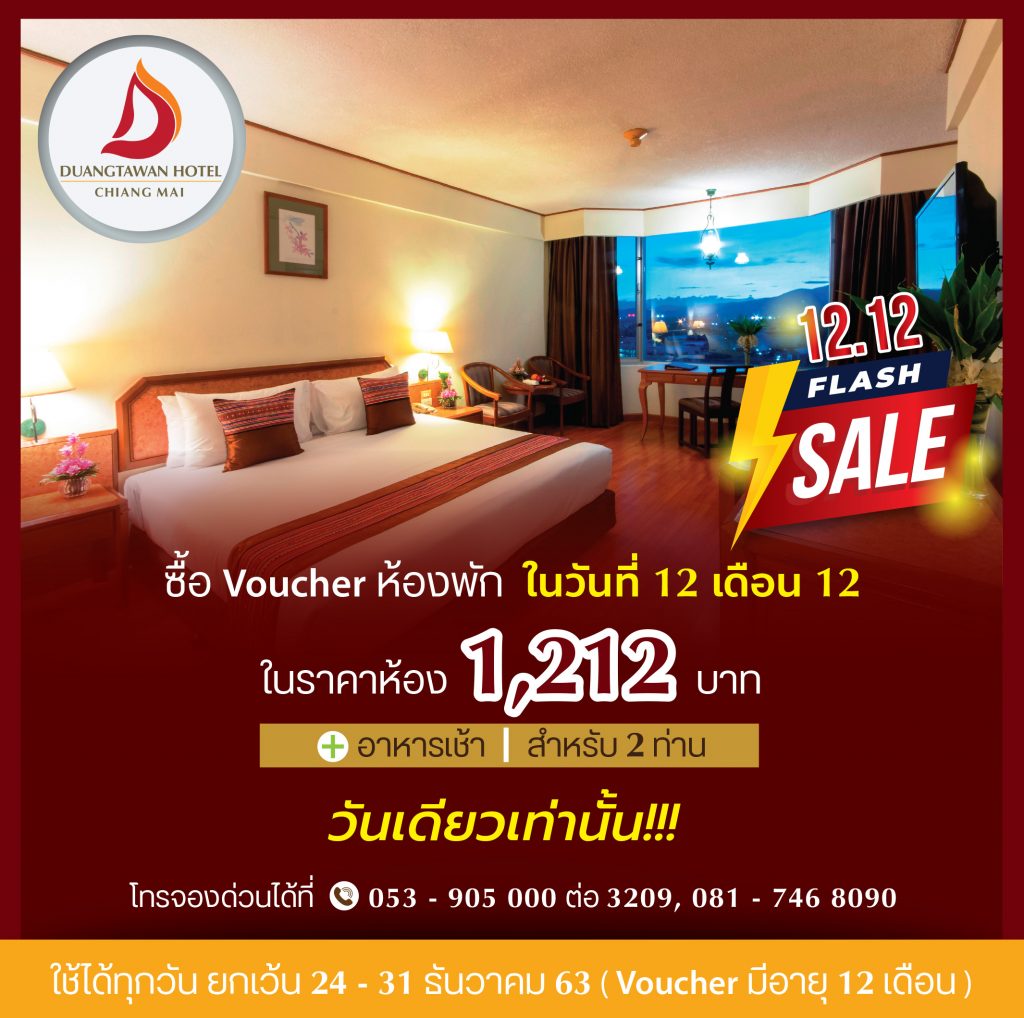 โรงแรมดวงตะวันเชียงใหม่ ขอเสนอ คูปอง ราคาเดียวเพียง 1,212 บาท ซื้อได้ในวันเดียวคือ วันที่ 12 เดือน 12 หรือเดือนนี้เท่านั้น คูปองมีอายุ 12 เดือน หรือ1 ปี และท่านสามารถเลือกใช้บริการได้ทั้ง