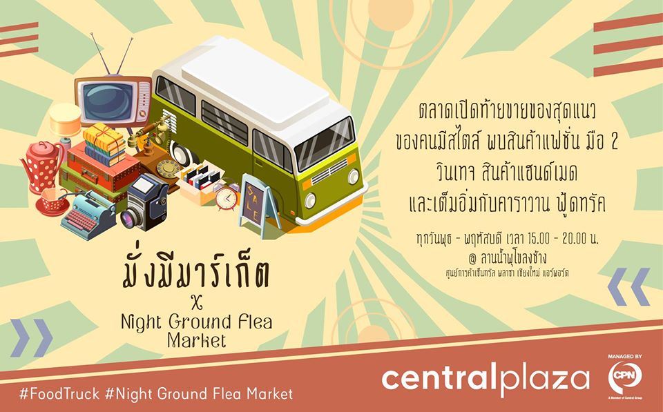ศูนย์การค้าเซ็นทรัล พลาซา เชียงใหม่ แอร์พอร์ต ชวนคุณมาช้อปชิลล์ๆกับ “มั่ง มี มาร์เก็ต X Night Ground Flea Market” เปิดท้ายขายของแฟชั่นมือสอง เสื้อผ้าสไตล์เท่ๆ ทั้งมือ 1 และมือ 2 ราคาเริ่มต้นเพียง 50 บาท ของแฮนด์เมด มาให้ช้อปกันเพลินๆ ของล้นตู้ ของประดับตกแต่ง ของสะสมยุคเก่า