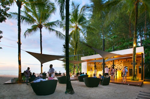 It was on a Saturday when I arrived first at The Sarojin (www.sarojin.com/en), a boutique hotel, up north of Phuket in Khao Lak. The rooms are very Zen. There are stones and slate on the bathroom floor beneath the showers, absorbing the water beautifully in the heat, and logs to put shampoo on and driftwood acting as decoration. The contemporary Asian style with strong symmetry allows nature to flow and there’s a real harmony with barely any distinction between the interior and exterior.