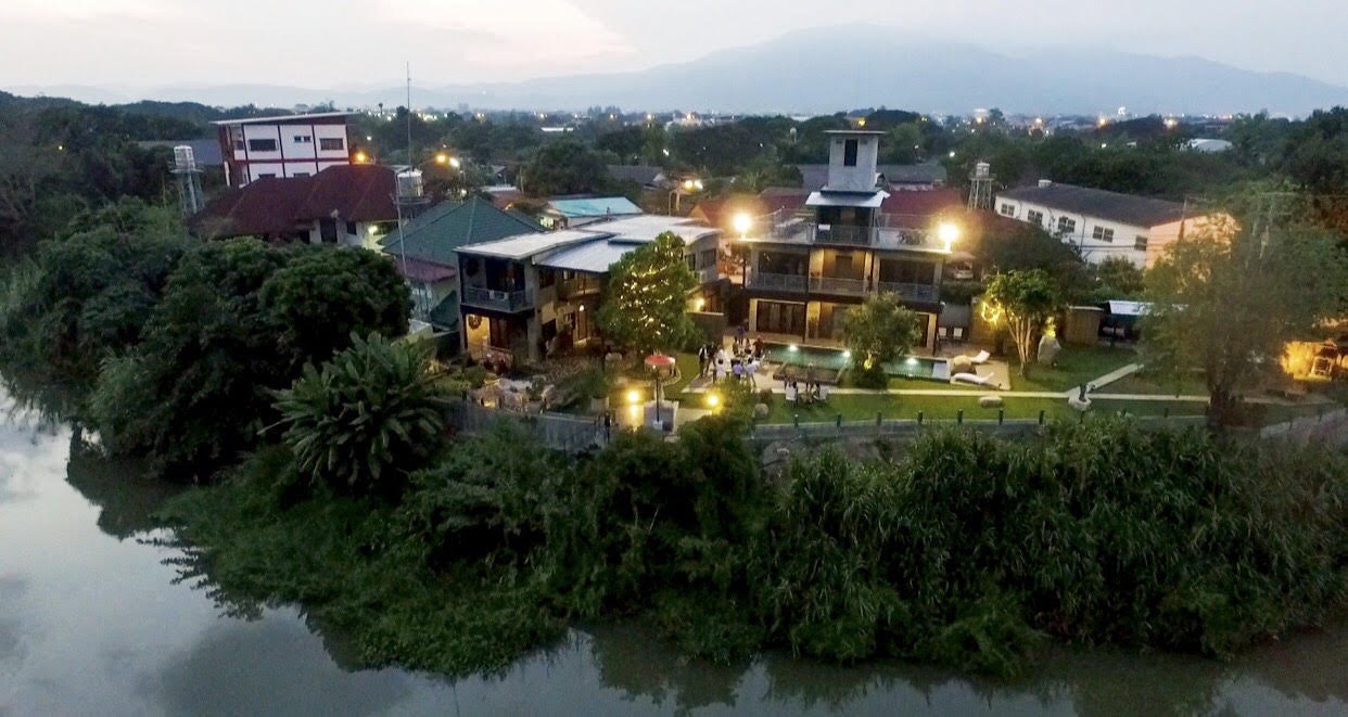 The exterior of polished concrete and an imposing, hand-carved 300-year old Indian door provides a hint that something special might lie within, without giving an indication of what it might be. We have arrived at 88 Place, located on the west bank of the Ping River, south of the city. Our family has come for a night’s stay at this five star rated villa south of Chiang Mai that has played host to families, groups of friends, business moguls and more than a celebrity or two.