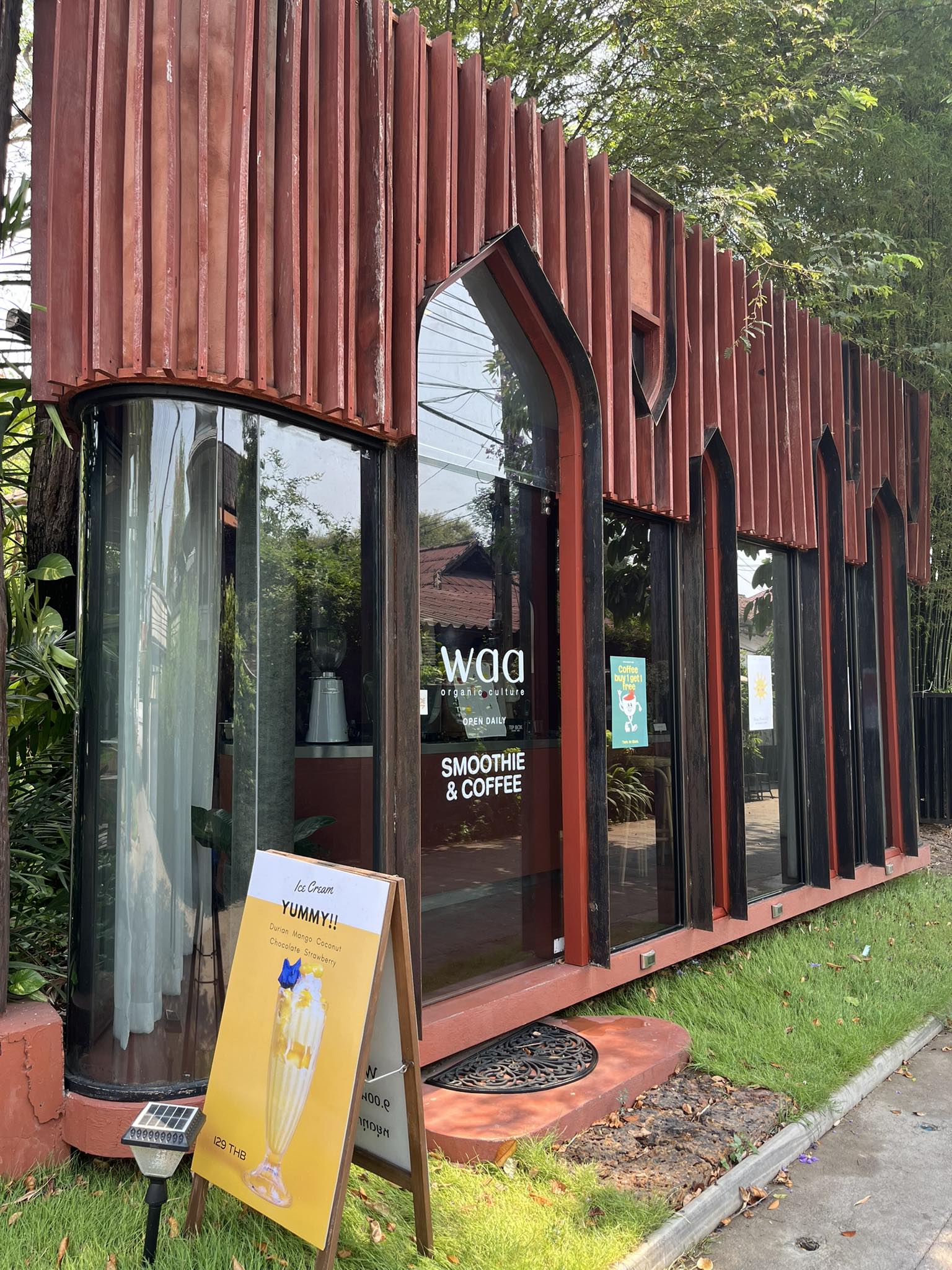 They have twelve rooms and villas sprawled on their property, a Waa Organic Culture Area serving lovely organic food and drinks all day long, the Laan Jambolan under the grand Jambolan tree, where you can while away some hours with a cold beer or an iced tea, the Laan Rim Nam, next to the pond where you can relax, take a breath and enjoy the nature, as well as an indoor air conditioned area on the first floor of the wooden house to be used for events or special occasions.