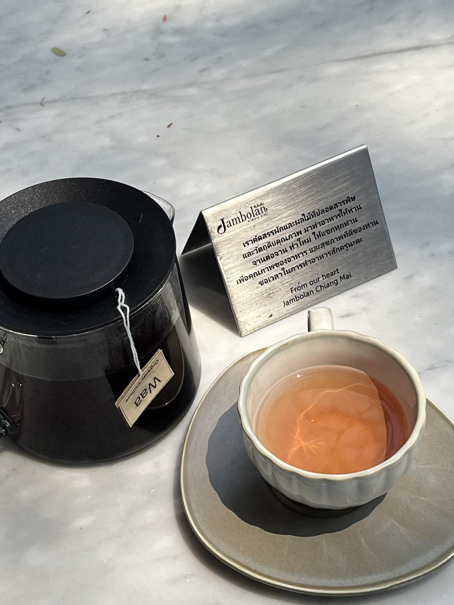 Two intriguing orders we highly recommend are the salted watermelon and picketed guava smoothies, reflecting on some favourite Thai flavours normally consumed as refreshing snacks. There are also numerous aromatic blended teas from which to choose, all designed to cool you down in this heat.