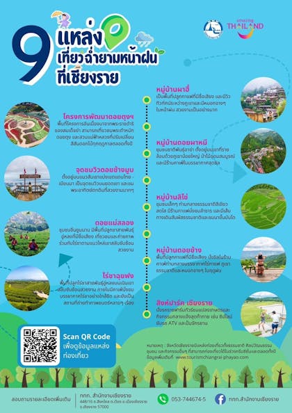 Wisut Buachum, Director of the Tourism Authority of Thailand (TAT) Chiang Rai Office—responsible for promoting tourism marketing and public relations in Chiang Rai and Phayao provinces—revealed that the rainy season, also known as the Green Season, is one of the most beautiful times to visit these two northern gems. Chiang Rai and Phayao offer lush natural landscapes, verdant rice fields, and tranquil mountain scenery. The peaceful atmosphere, refreshing weather, and cool breezes create an enchanting experience that draws visitors seeking relaxation and joy. During this season, visitors can witness stunning sunrises amidst seas of mist following the rains, showcasing the unmatched beauty of these destinations.
