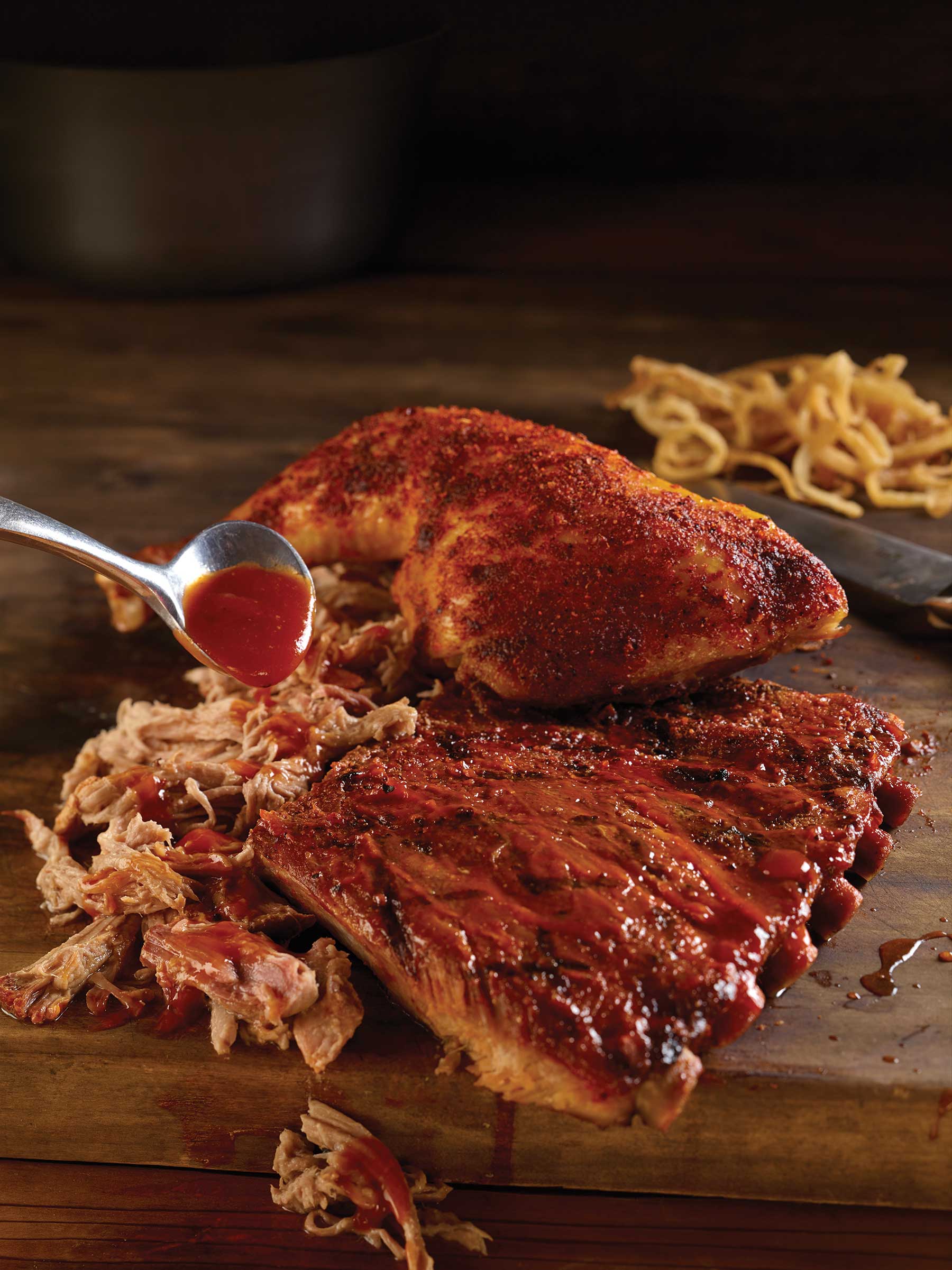 Falling-off-the-bone tender ribs, rubbed with signature seasoning and basted with hickory and roasted until fork-tender.