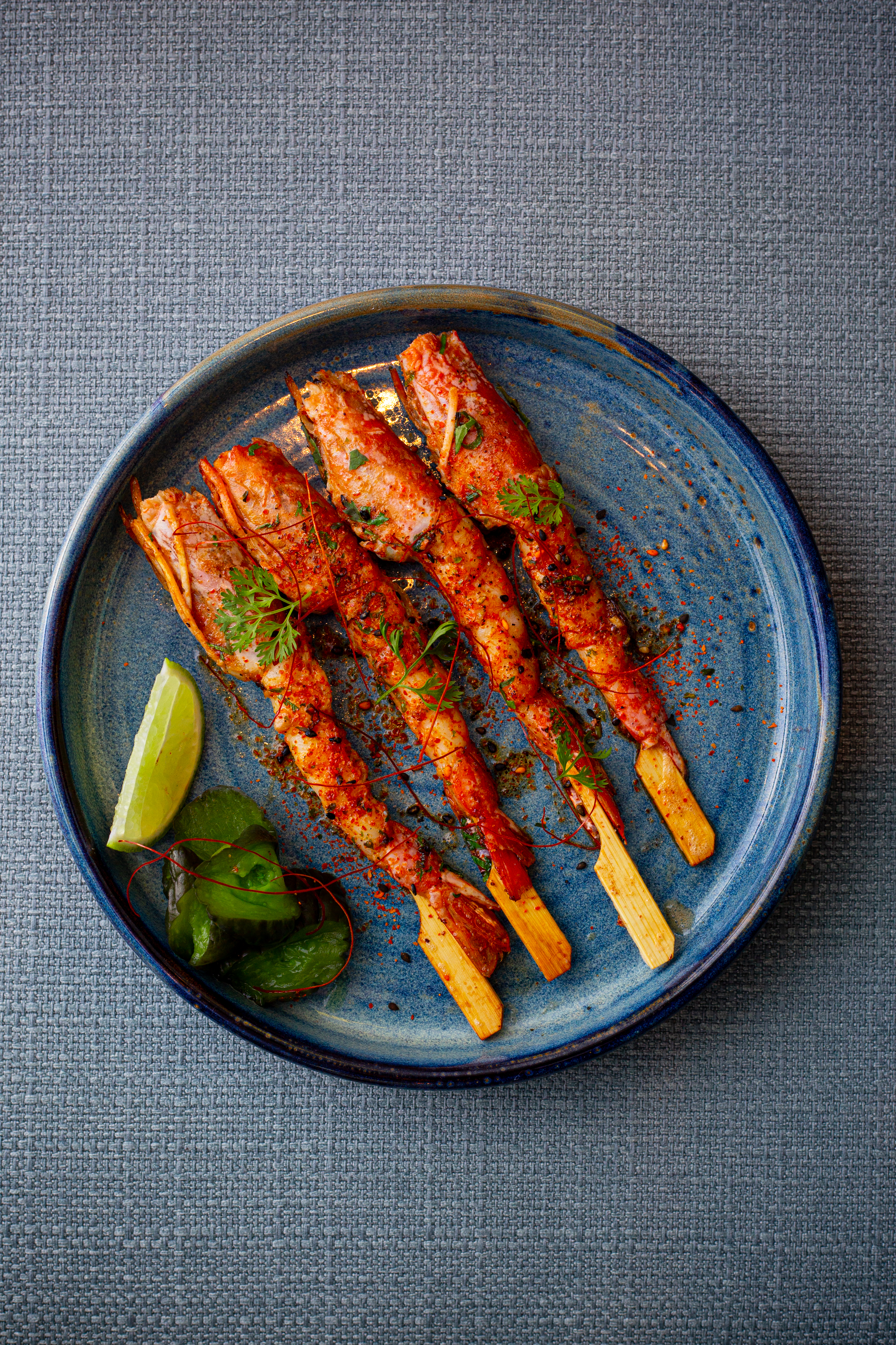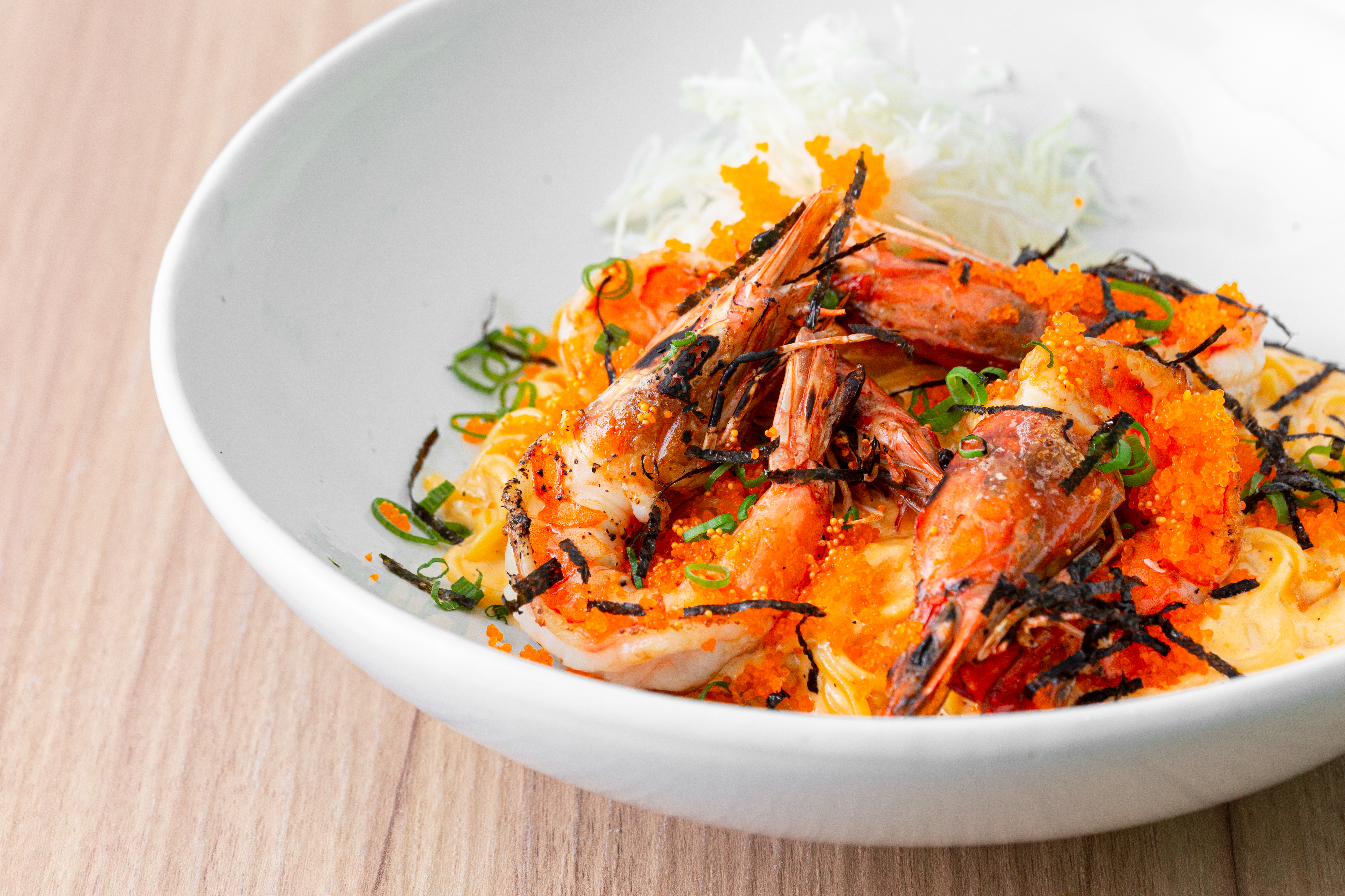 Order sake, beers, wines, and sit back and sample any number of intriguing dishes such as the red prawns cooked with spices and butter in a Spanish style, but served on sticks the Japanese way. Or try the diced wagyu bruschetta slathered with truffle sauce. There are numerous yakitori sticks to order, from vegetarian to meats and seafood.