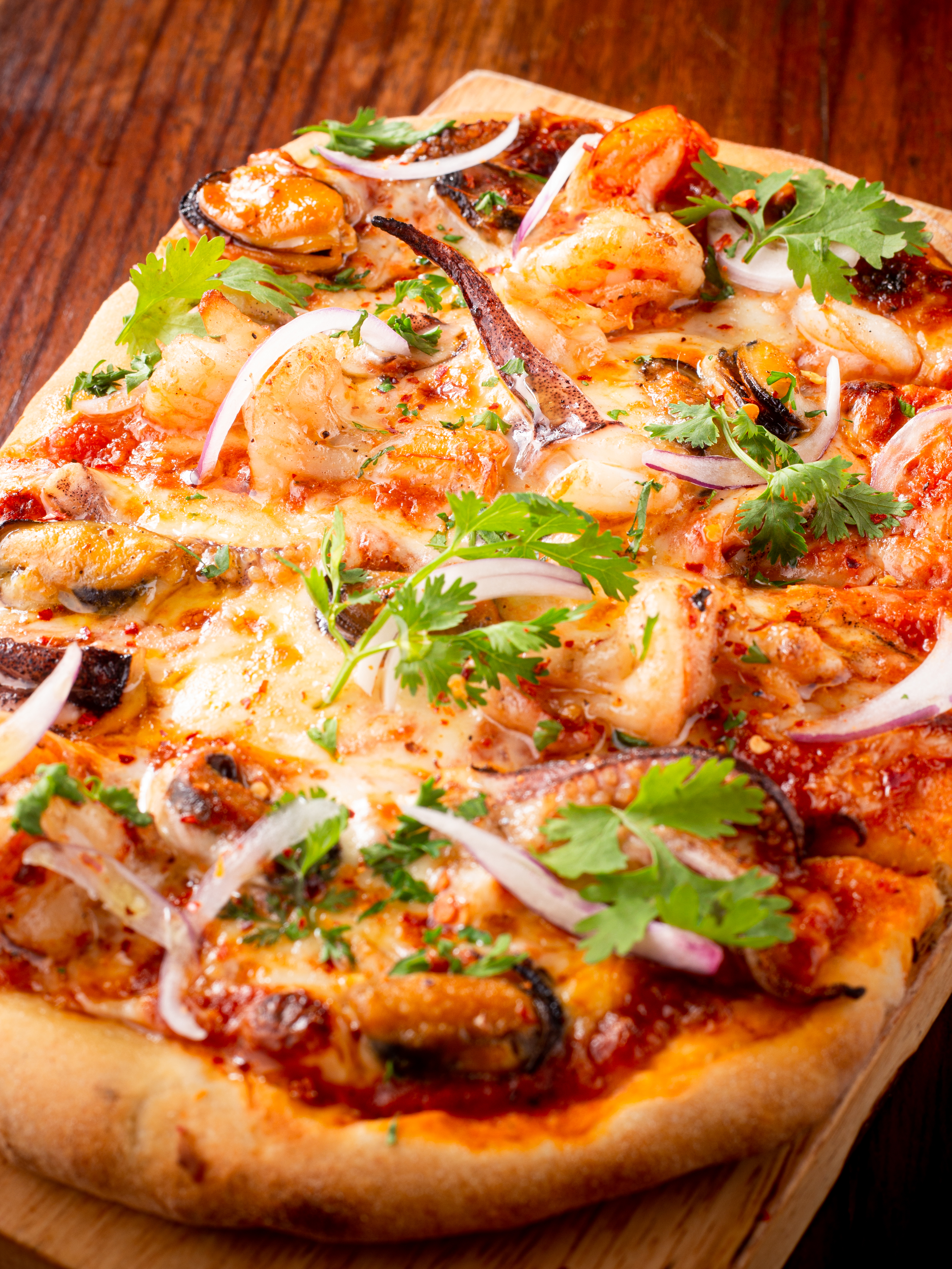 The truffle fettuccini is another delightful dish, served with crispy bacon and Parma ham. Then there are all the pizzas you can imagine, all home made, with generous toppings. Try the Parma ham and rocket salad pizza or the super sea food pizza which is just brimming with squid, prawns, calamari and more.