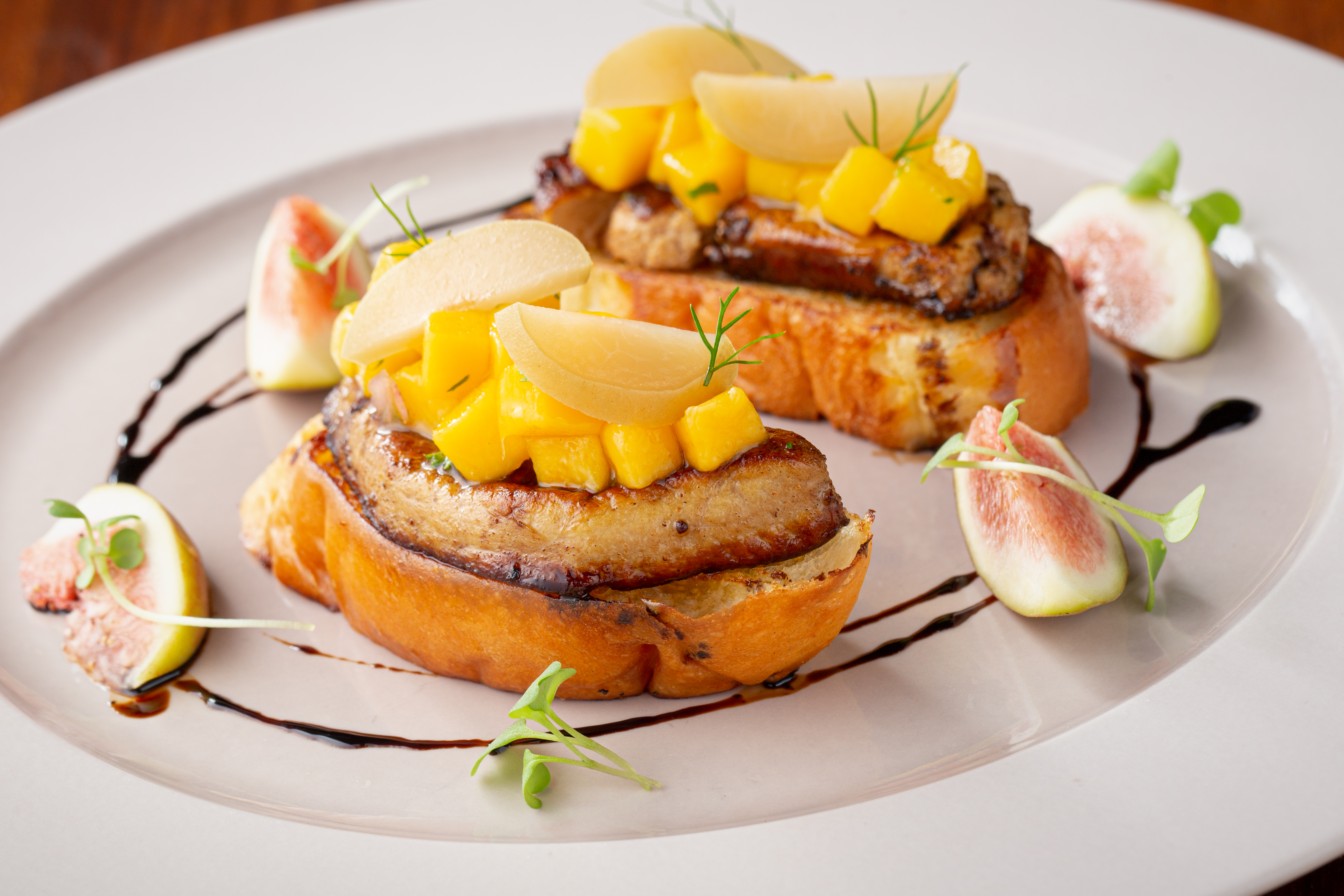 Start with a grilled foie gras served on brioche served with – wait for it – mango and sweet mango dip and picked peaches. If you can’t quite imagine what this unique flavour profile tastes like, then you just have to go order it and try.