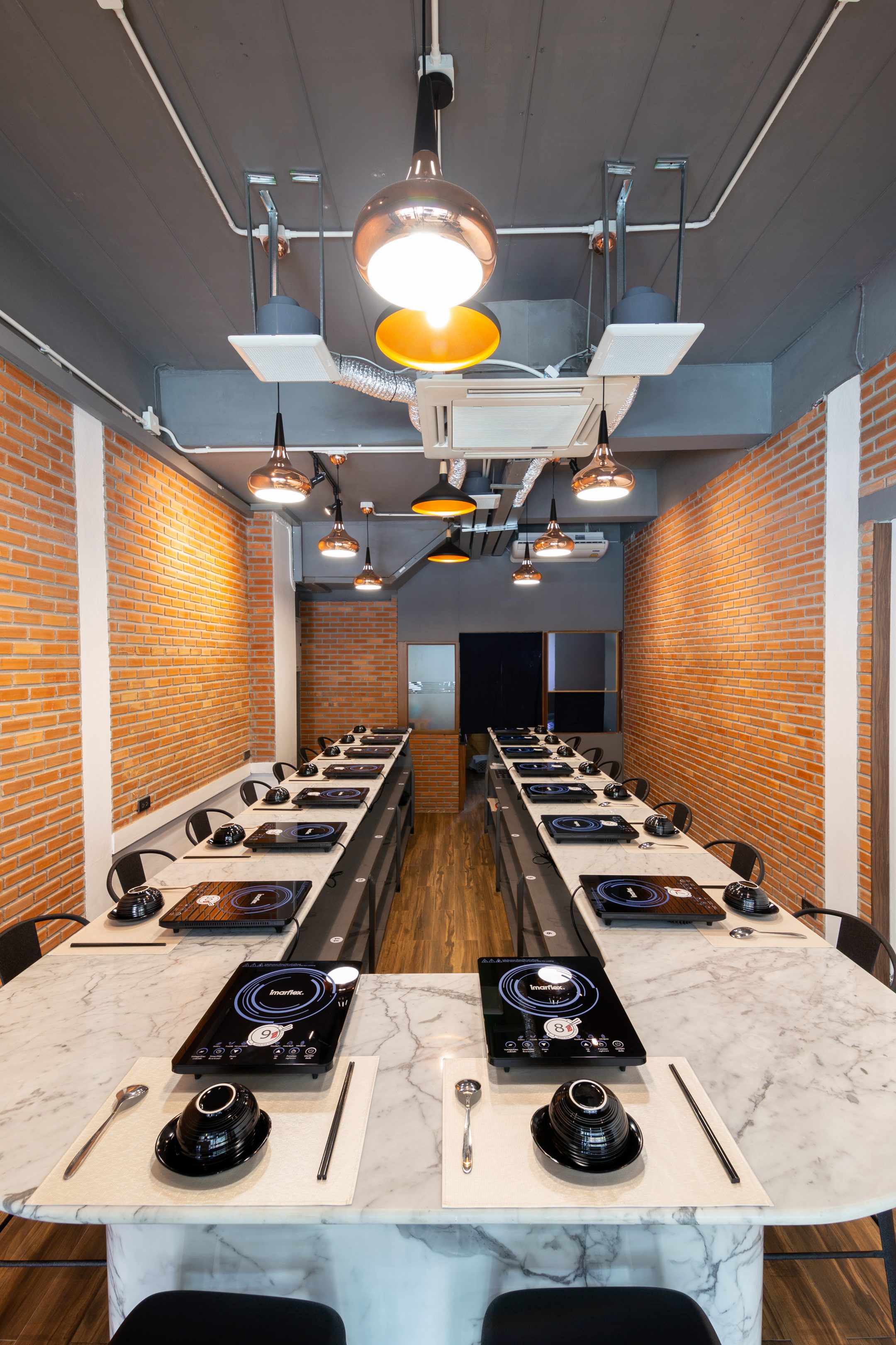 “I love shabu shabu,” said Pirasingh ‘Tan’ Jiachanont, who owns the restaurant with his wife Supaphonr ‘Im’ Jiachanont. “I have spent many moons eating at various shabu shabu restaurants in Chiang Mai and have studied the dish seriously through many media. I decided to make a few changes to the classic experience by elevating the marble bar so it is more like a western bar counter, adding low hanging lights and brick walls for a warm and social dining experience.”