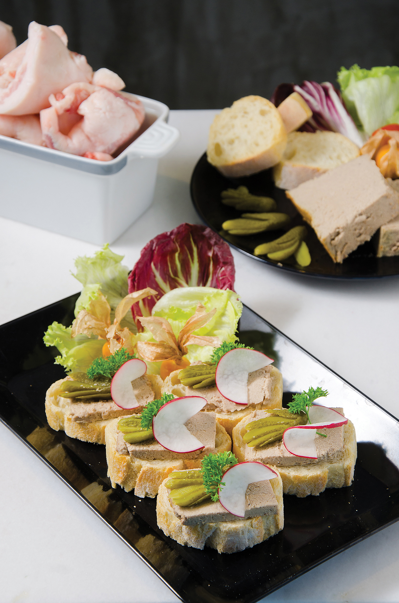 “Pate is a classical European spread mixing up ground meat, liver and lard marinated with a variety of herbs and spices,” said Chef Nicolas, Rattikan adding that she has noticed that Thai people are becoming quite enamored of the spread in recent years. “So we would like to present our very own pate to you,” the pair chimed adorably in unison.