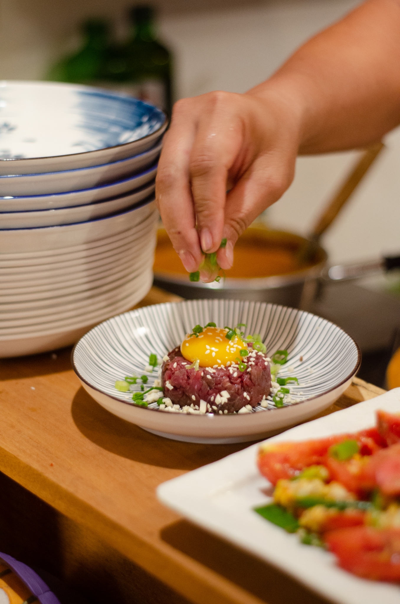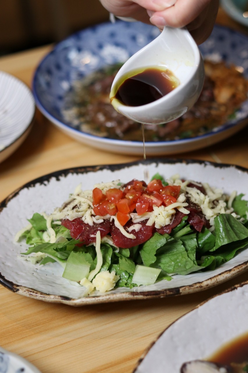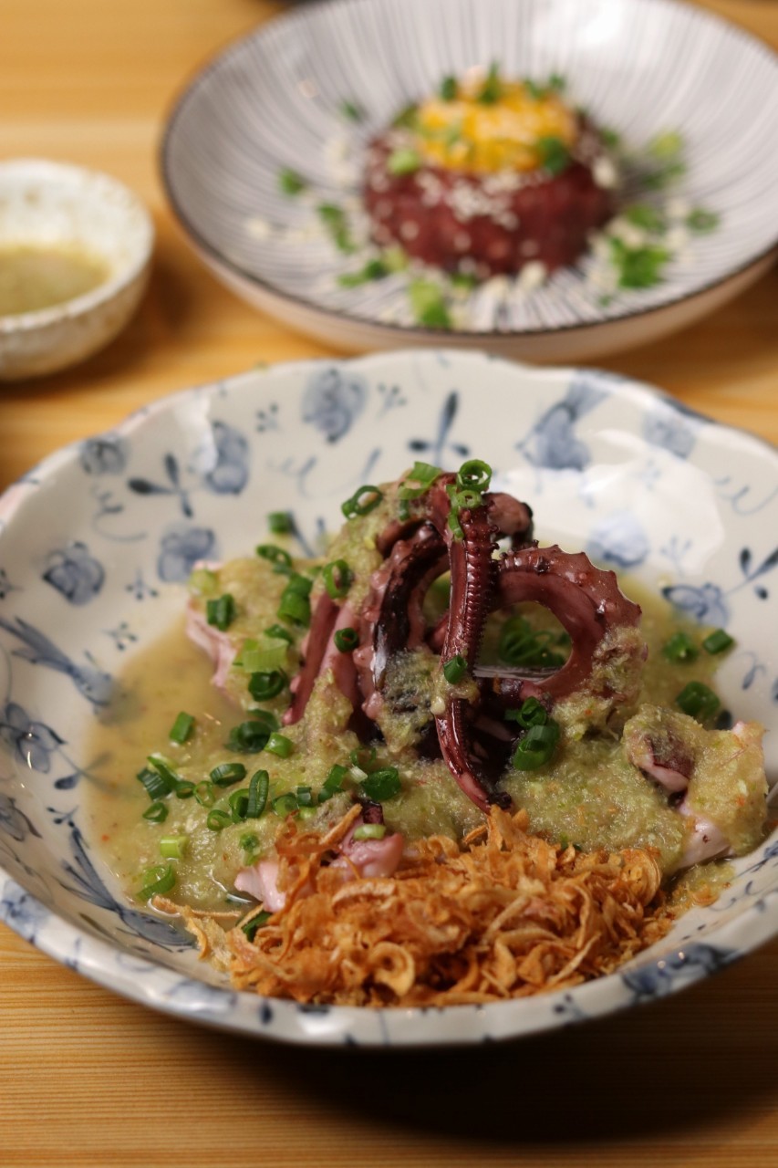 Behind the bar counter is a small open kitchen where Ko works his magic, interacting with guests in a family and friendly manner.