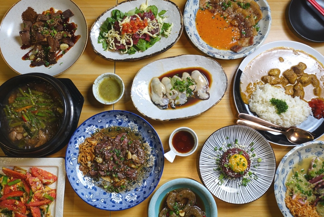 As to beef dishes, there are Japanese style fried beef, Korean style beef tartare with raw egg, stewed beef tongue fried with garlic and butter, and many other tasty delights.