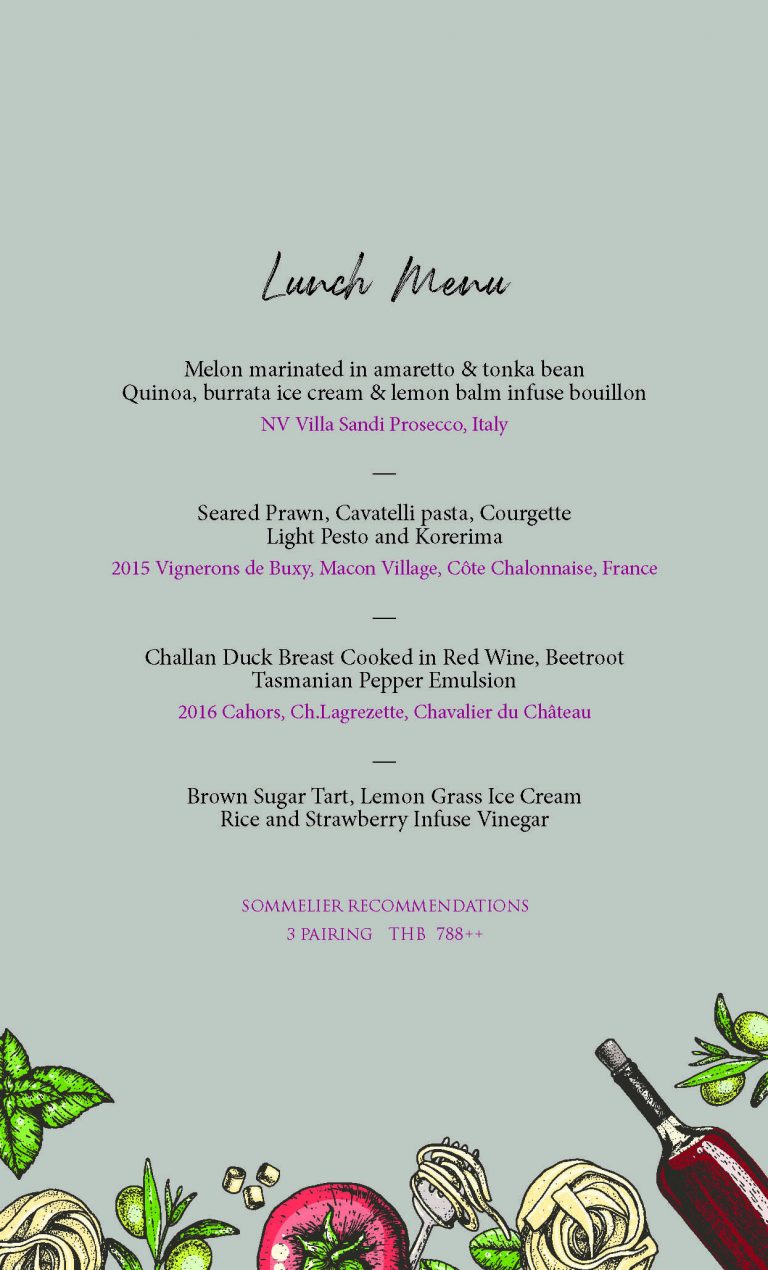 Lunch 11.30am – 2.30pm. 1,588++ baht per person