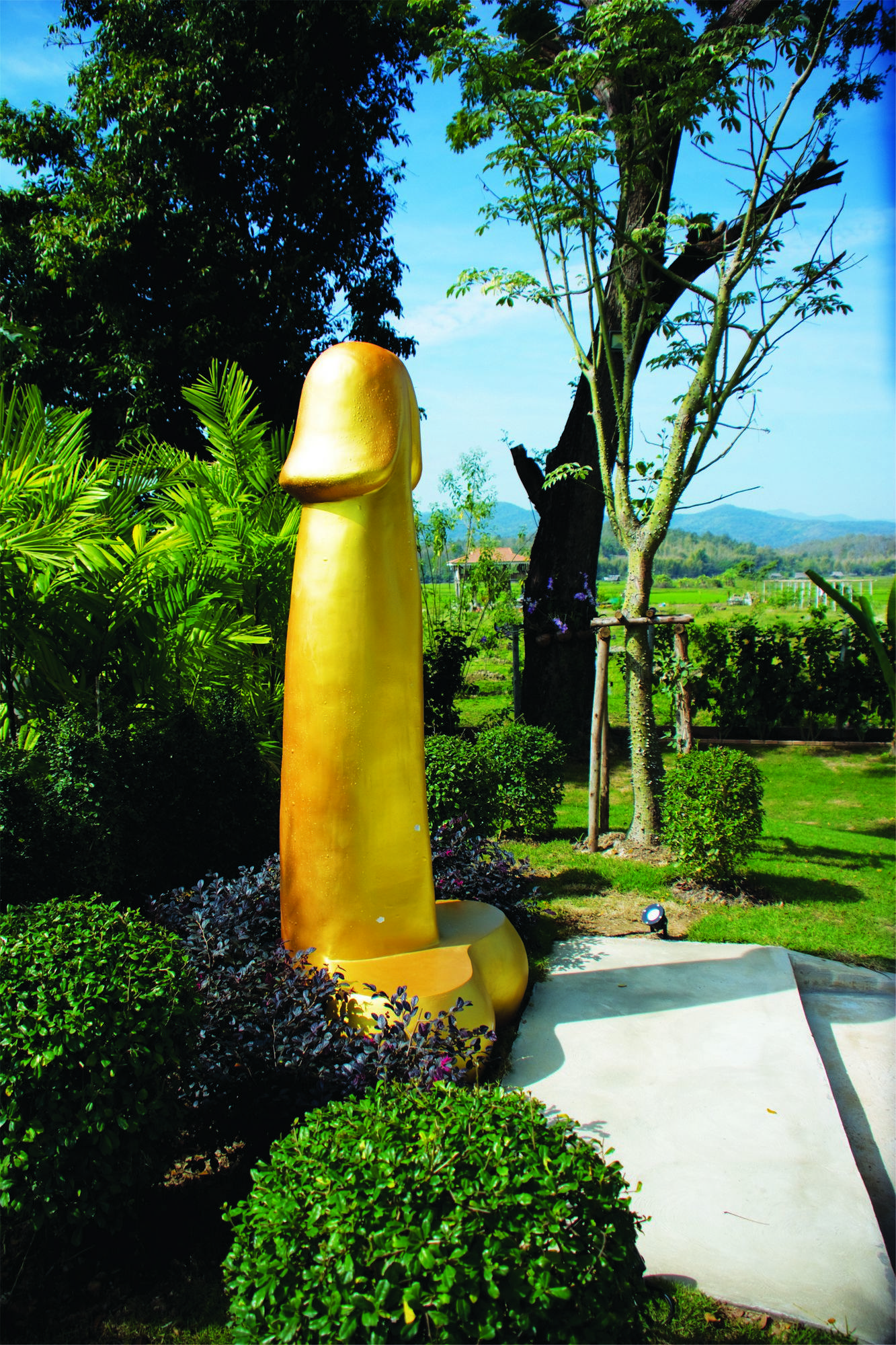 Tucked into a lush sea of rippling green rice paddies of north Mae Rim is a teahouse. Made from a converted barn and surrounded by a walled garden, it may at first appear like any other teahouse. That is, until you notice the umbrella stands. And the columns holding up the antique sala. Are those…? Yes, folks, those are penises. Welcome to the brand new Erotic Garden and Teahouse of Mae Rim!