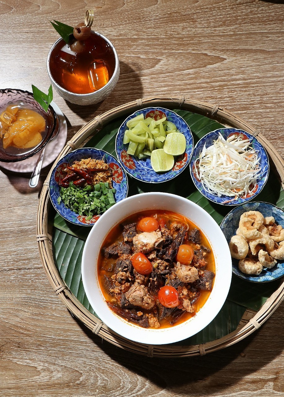The legendary ‘Hinlay’ pork stew from grandma’s recipe, long served in a hot pot, is a must try, especially now that Noi has come back from a visit to Morocco inspired to serve her stew in a tajine instead of a local hot pot. The reason for this is so that the food doesn’t lose its moisture, retaining all of its rich spices and flavours when served.