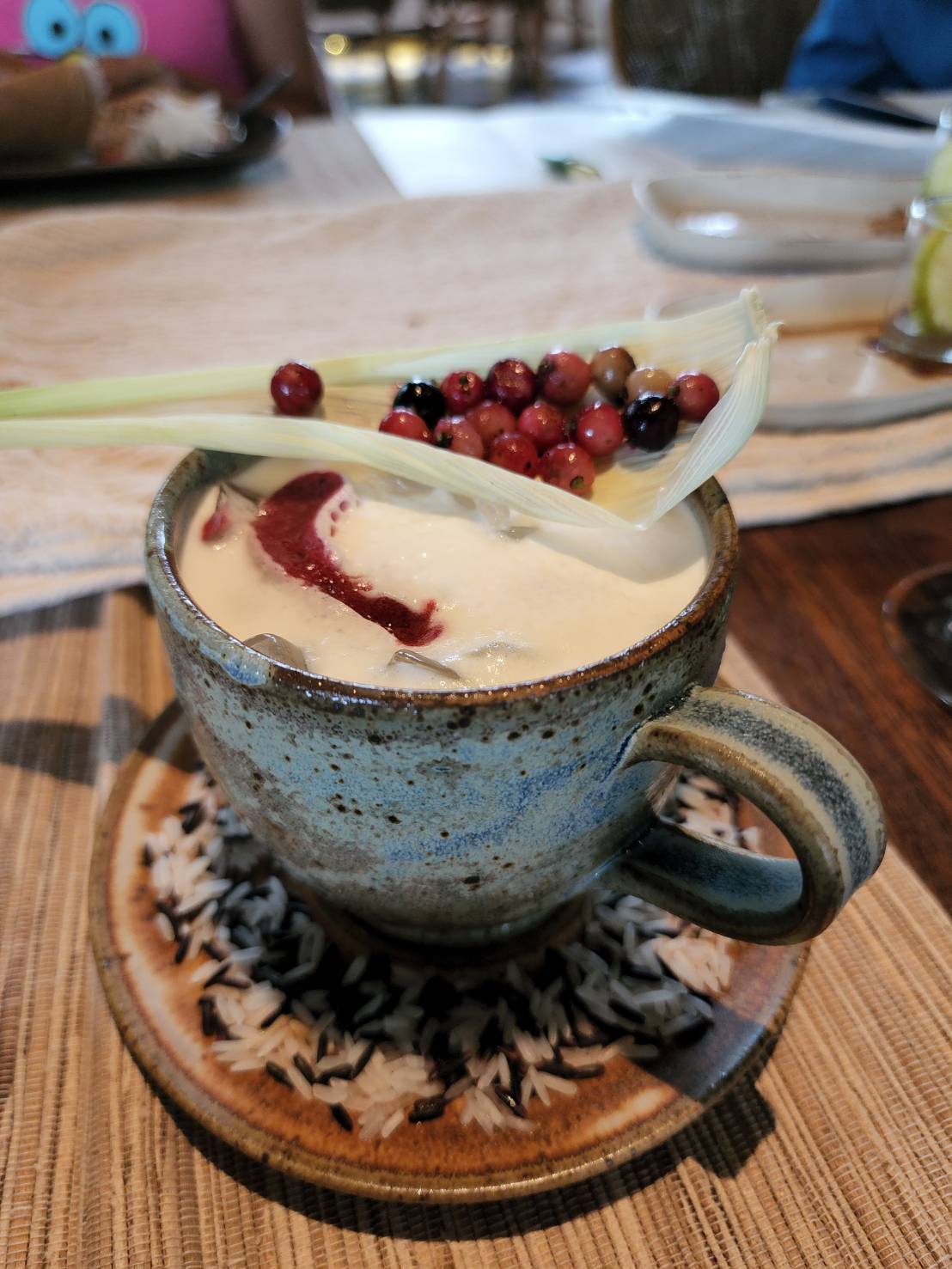 This dish is paired with a saa to ice cream. Saa to is jasmine rice rum and when a splash of sweet and rich Khalua is added, along with a pinch of organic coffee, some syrup, wild berry purée, fresh wild berry and milk…well…it is simply lip-smacking!