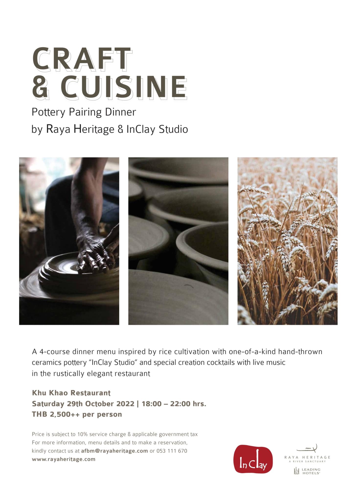 Craft & Cuisine Pottery Pairing Dinner at Khu Khao Restaurant, Raya Heritage Chiang Mai will be held on 29th October 2022 from 6pm-10pm.