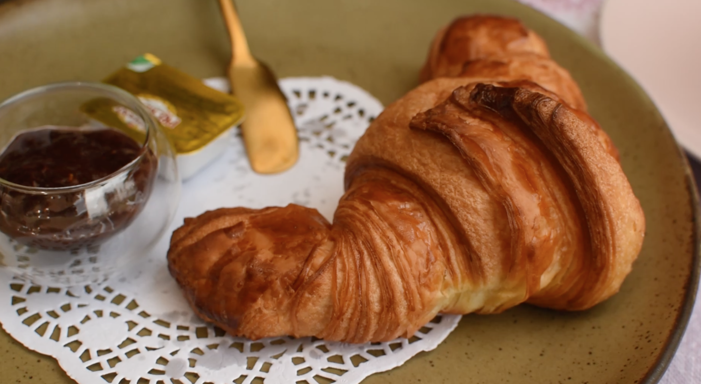 Uniqueness: Crescent shape croissants, jam and butter compliments, location