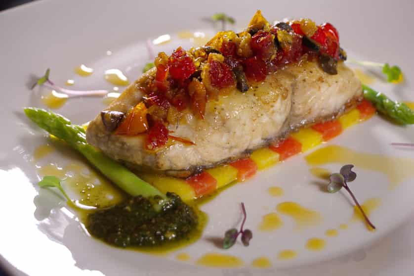 Another fish dish to try is the baby sea bass with sundried tomatoes and pesto served with two sauces, the first sundried with parsley and olive oil and the other pesto with parmesan.