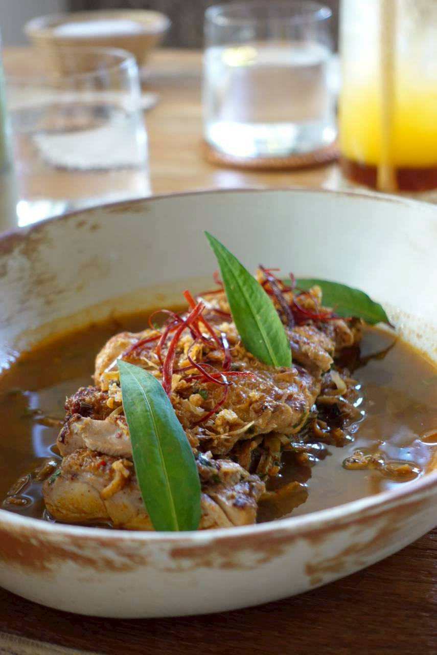 Though Chef Bank employs modern techniques often found in international kitchens, his mission is to preserve the soul of each dish. Take the spicy grilled organic chicken with local herbs and chilli in clear broth — a deep dive into Northern cuisine. The large pieces of chicken are grilled, then slow-cooked before being transformed into a classic yam jin gai steeped in vibrant, freshly made spices.