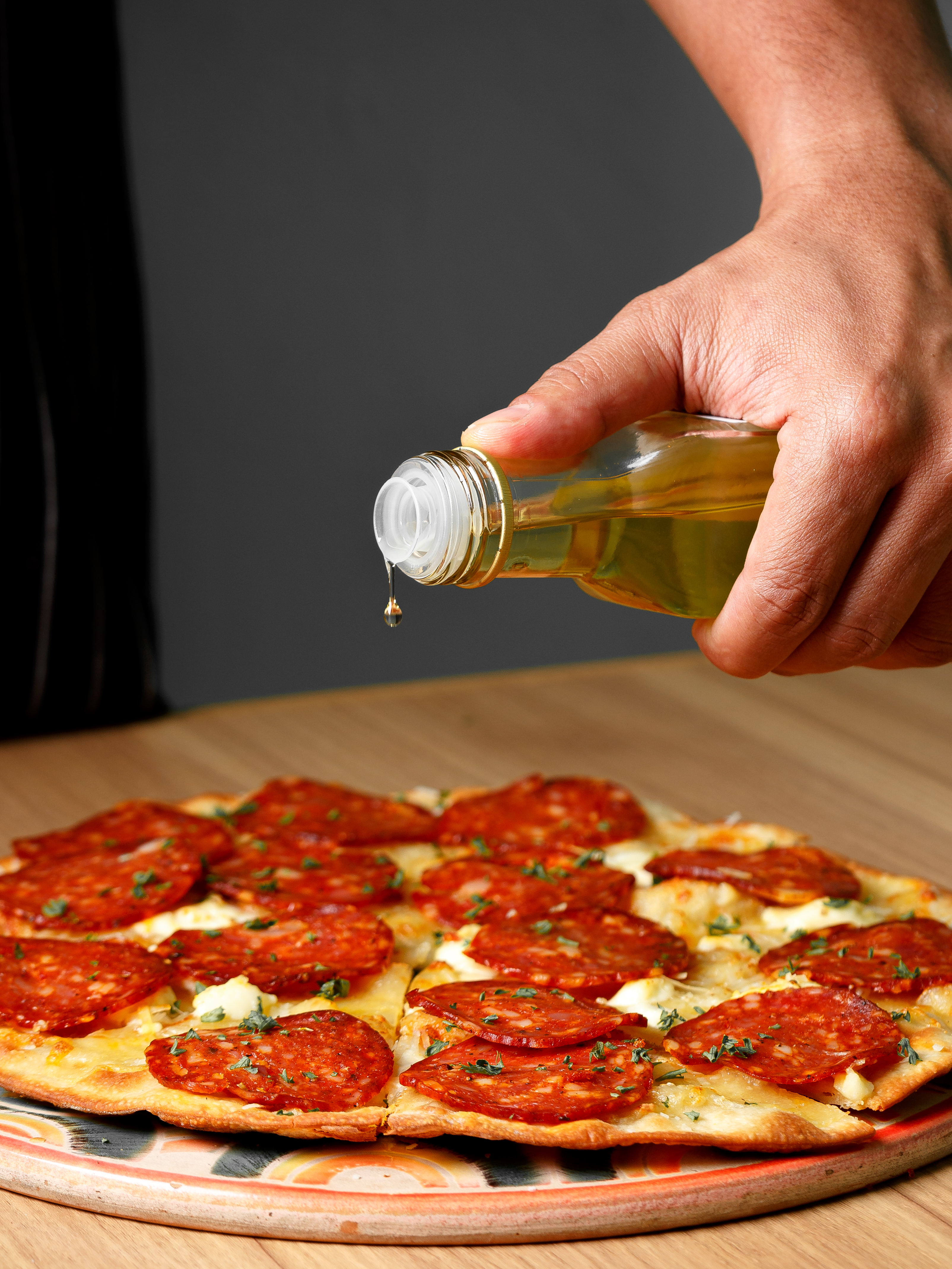 Finally, Pepperoni, a classic pizza topped with mozzarella cheese that goes well with spicy pepperoni. A creamy melted mozzarella cheese enhances flavor while pepperoni add texture and spiciness.