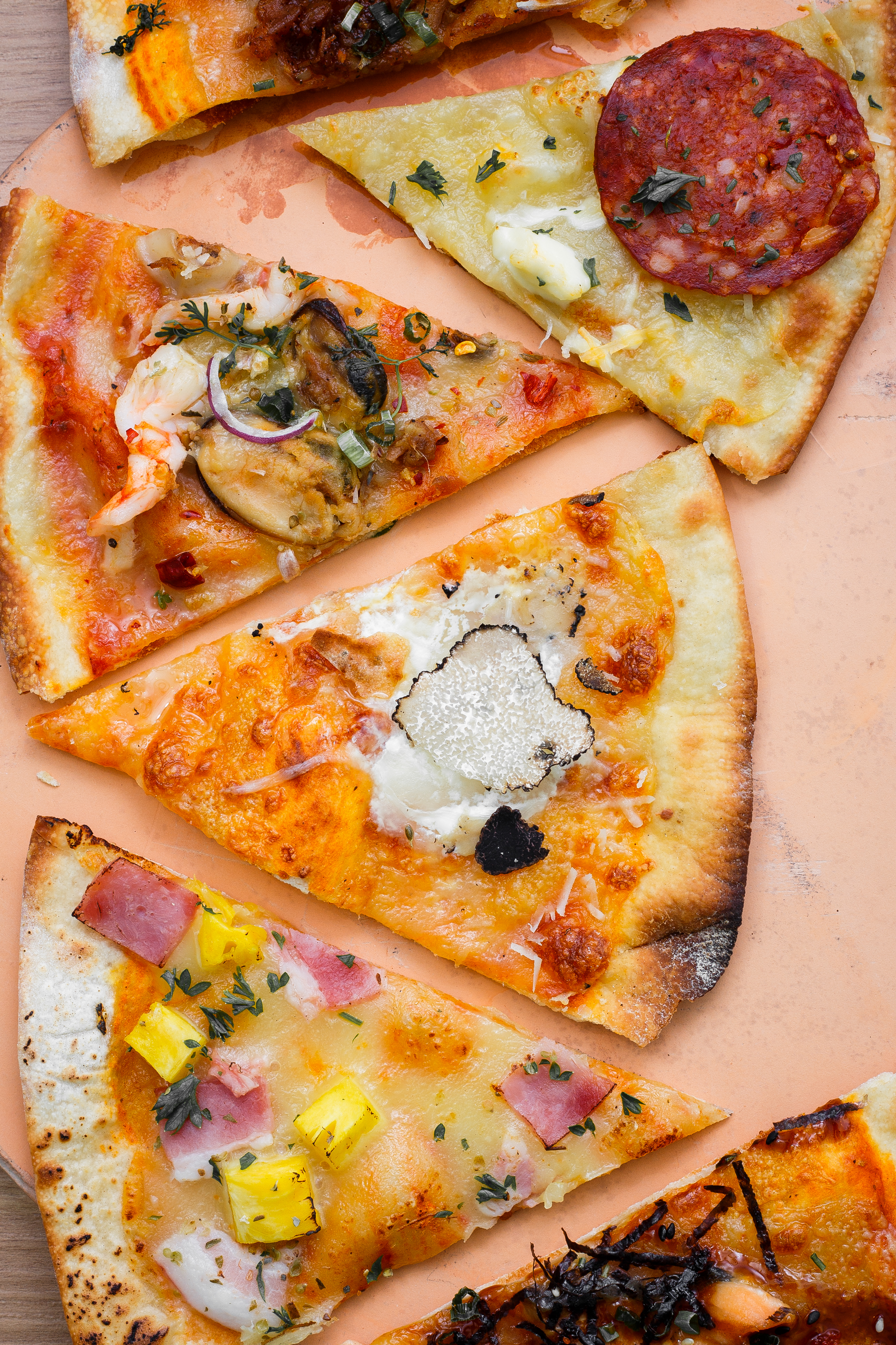 Red Sea is a great way to add a little taste of the sea to your pizza. Shrimp, squid, clams, tuna and anchovies are layered on top of a pizza base and combined with stir-fried chili garlic.