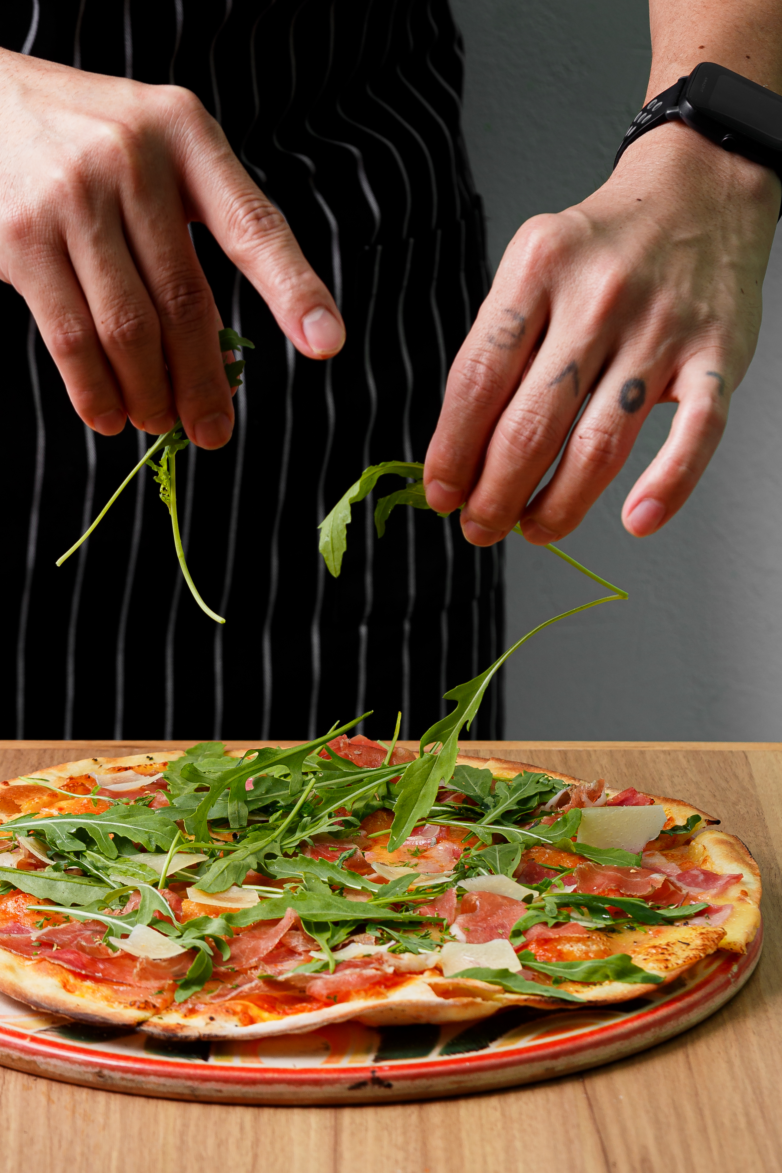 Parma ham Burrata rocket has a crispy crust, topped with a rocket salad and parmesan cheese, creating the most delightful flavor in your mouth.
